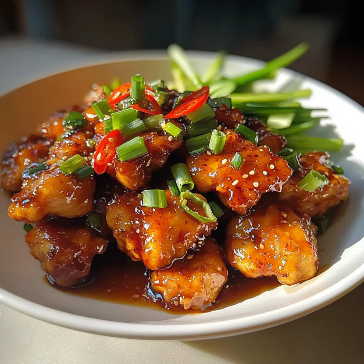 Once cooked through, turn off the heat and plate your vibrant ginger chicken. Garnish with a sprinkle of finely sliced green onions for a pop of color and freshness. Pair it with steamed jasmine rice or your favorite veggies for a delightful meal that brings that takeout taste home.
