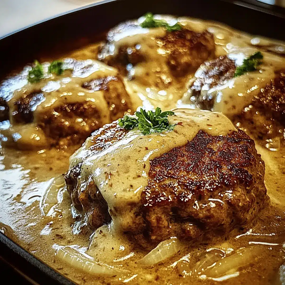 Very good question! If you find the gravy has thickened too much while cooking, simply whisk in a bit more beef broth or cream over low heat until it reaches your desired consistency. It’s all about finding that perfect velvety texture that complements the patties just right!