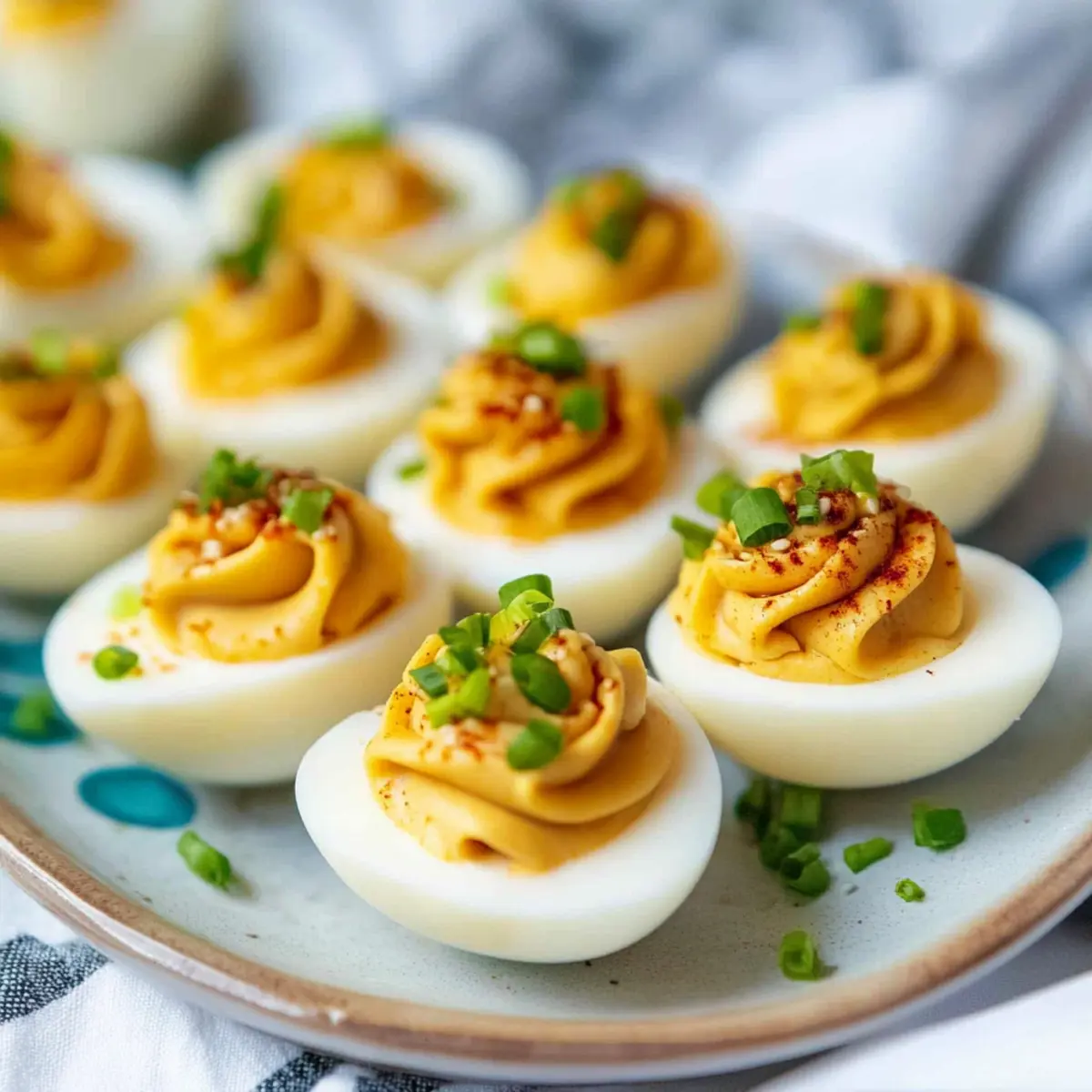 • Finely Chopped Green Onions – Freshness that gives your deviled eggs a burst of color and flavor.