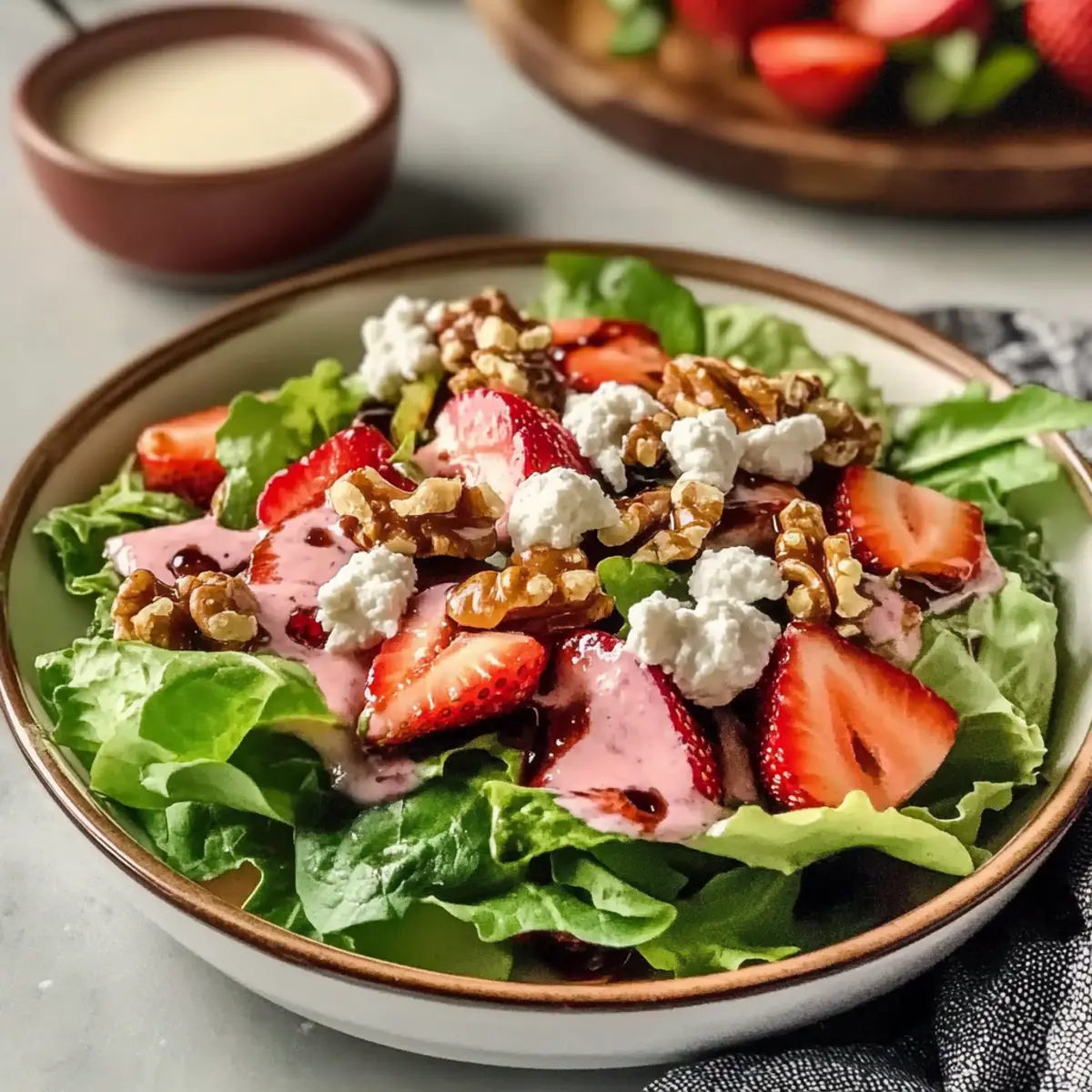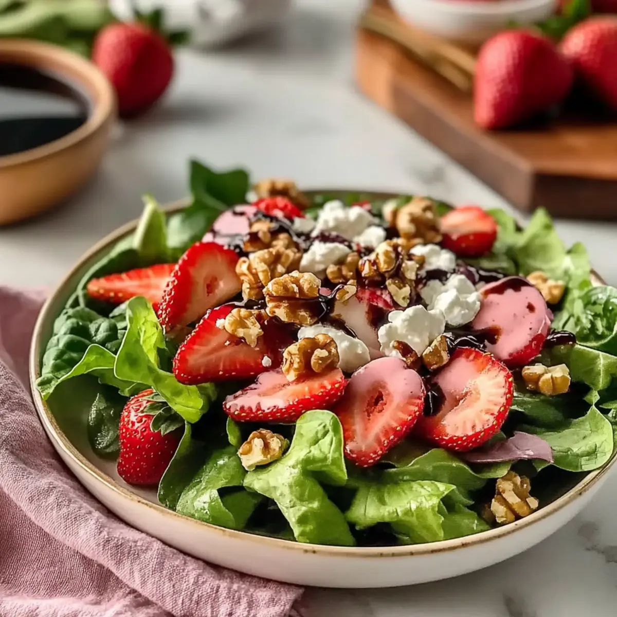 Absolutely! For the best flavor, choose fresh, ripe strawberries that are bright red and firm to the touch. Avoid strawberries with dark spots or mushy areas, as they may affect the salad’s texture and taste. If strawberries are out of season, feel free to swap in other berries like blueberries or raspberries for a delightful twist.