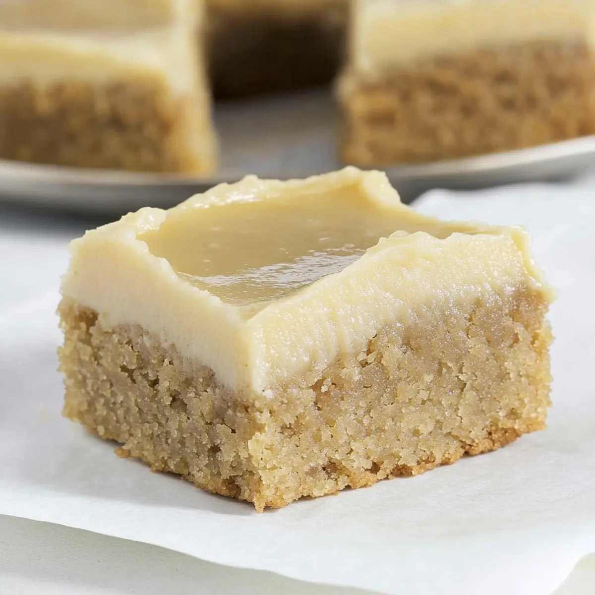 - Spread the brown butter frosting over cooled blondies, cut into squares, and serve.