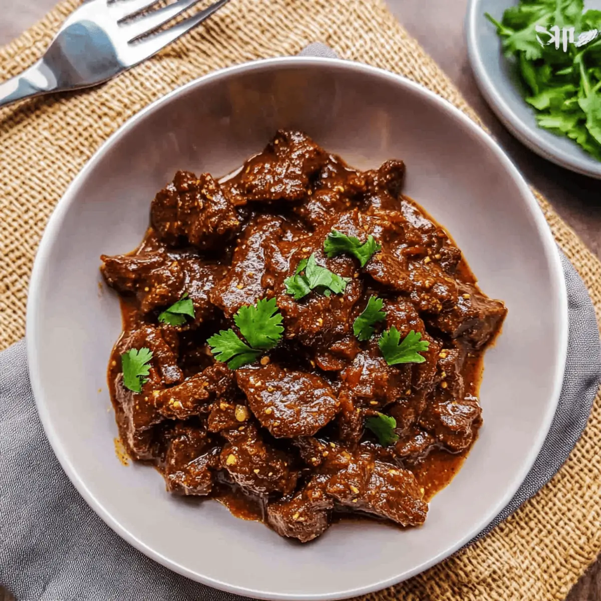 Mango Chutney: Sweet and tangy, this condiment brings a burst of contrasting flavor that echoes the complexities of the beef curry. It’s a delightful, palate-cleansing option.