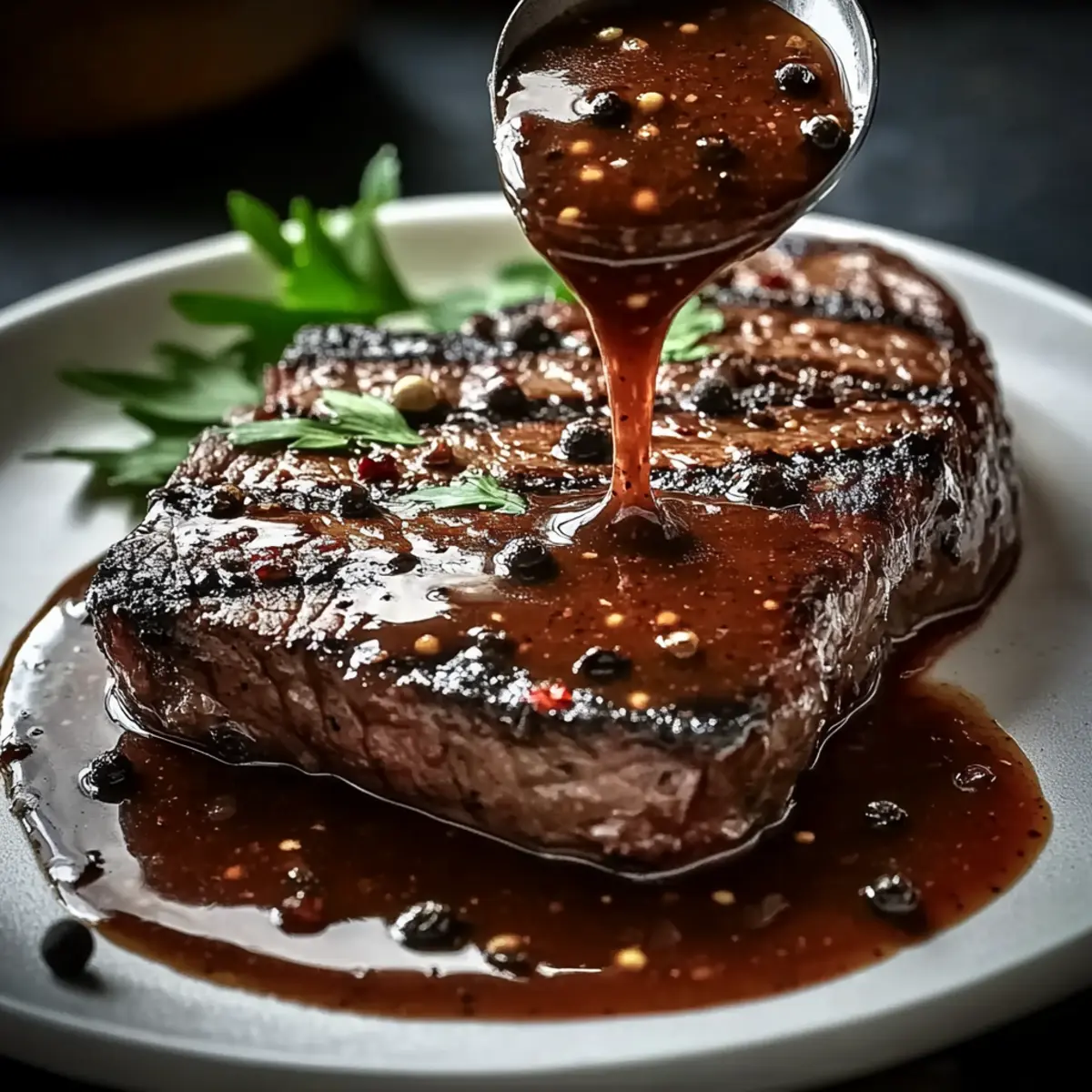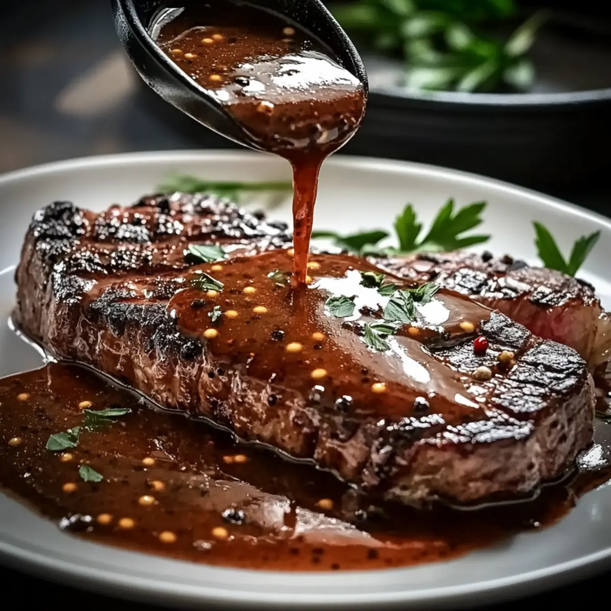 - Serve the sauce generously over cooked steak and garnish with fresh chopped parsley.