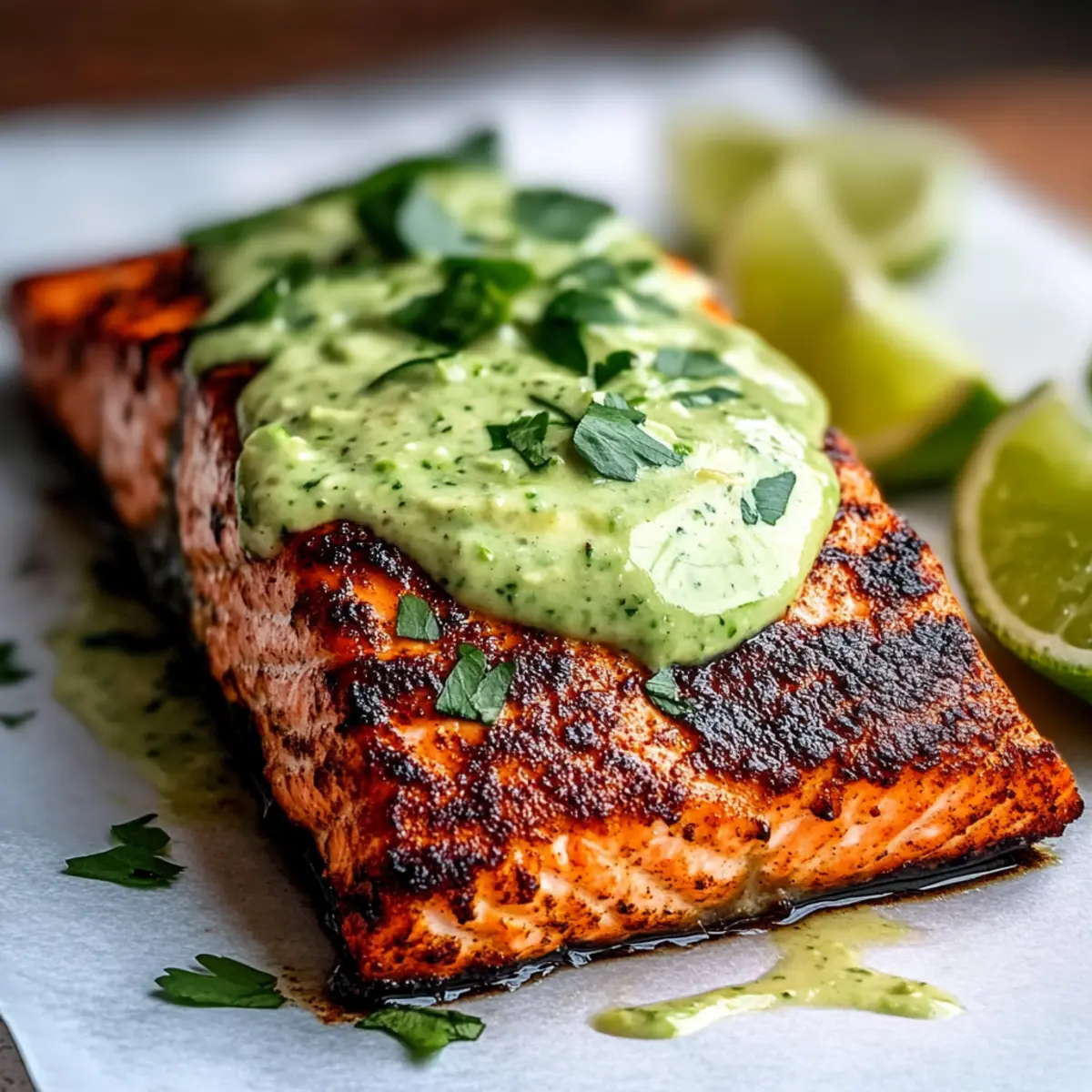 - Let the salmon rest for a few minutes, then drizzle the Avocado Lime Sauce over it to serve.