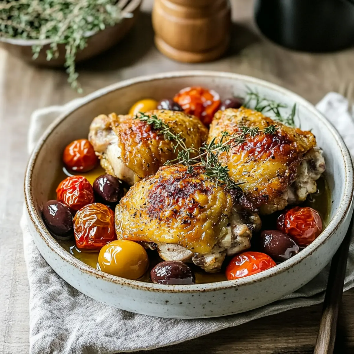 Crispy Greek Chicken Thighs with Tomato-Olive Medley