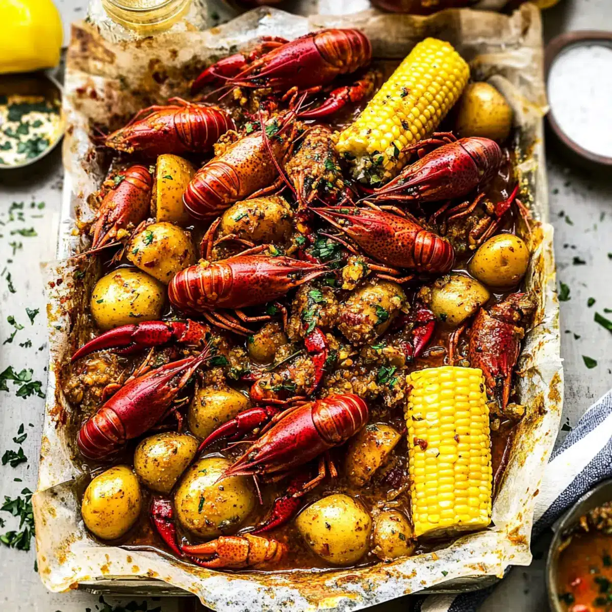 Savory Stovetop Crawfish Boil with Garlic Butter Sauce Delight