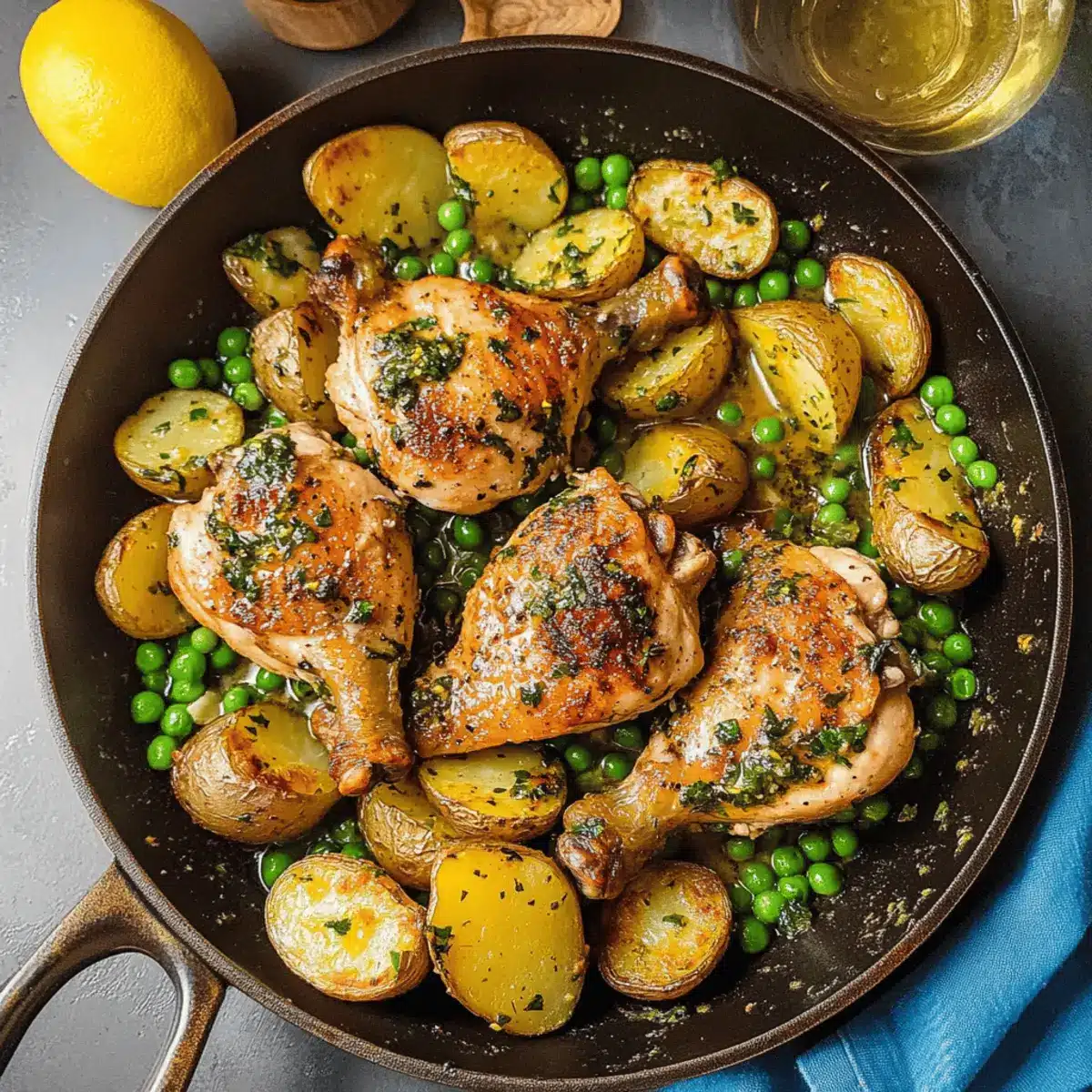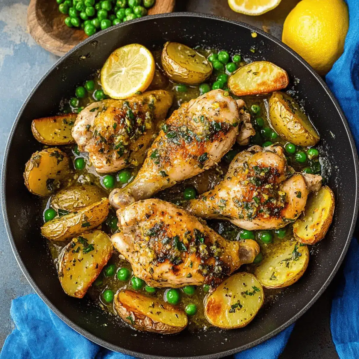 Finally, squeeze fresh lemon juice over the dish and sprinkle chopped parsley for a vibrant finish. This not only brightens the overall flavor but also enhances your presentation. Your comforting Chicken Vesuvio is now ready to be served—enjoy with crusty bread or a light salad for a truly delightful meal!