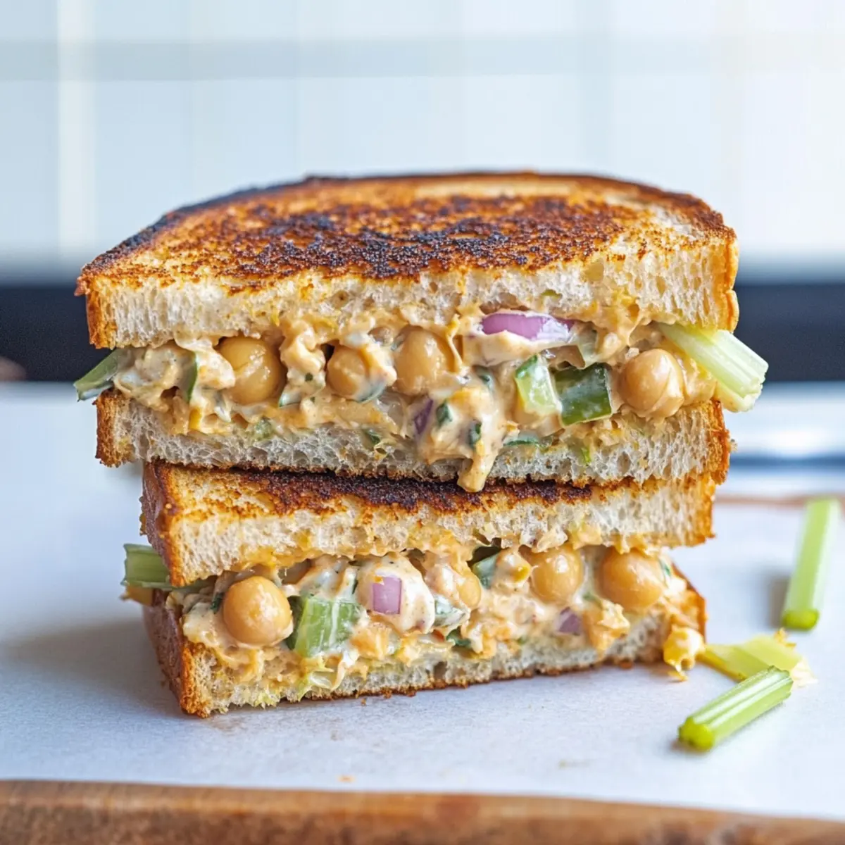 Make-Ahead Chickpea Salad: Prepare the chickpea salad mix and keep it in the fridge for up to 3 days. Assemble sandwiches just before cooking to keep bread crispy.