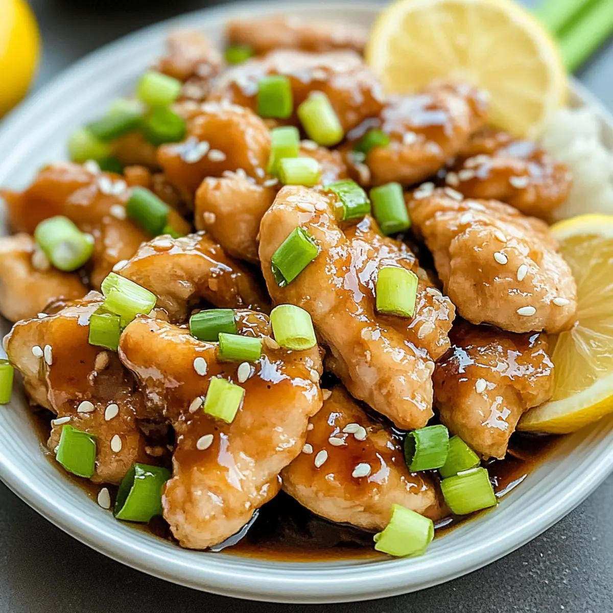 Finally, toss the crispy fried chicken pieces in the thickened sauce until evenly coated. Allow the flavors to meld for a minute, ensuring every piece is luxuriously enveloped. Serve your vibrant Chinese Lemon Chicken hot, garnished with green onions and sesame seeds over a bed of rice or noodles for a delightful family-friendly meal.