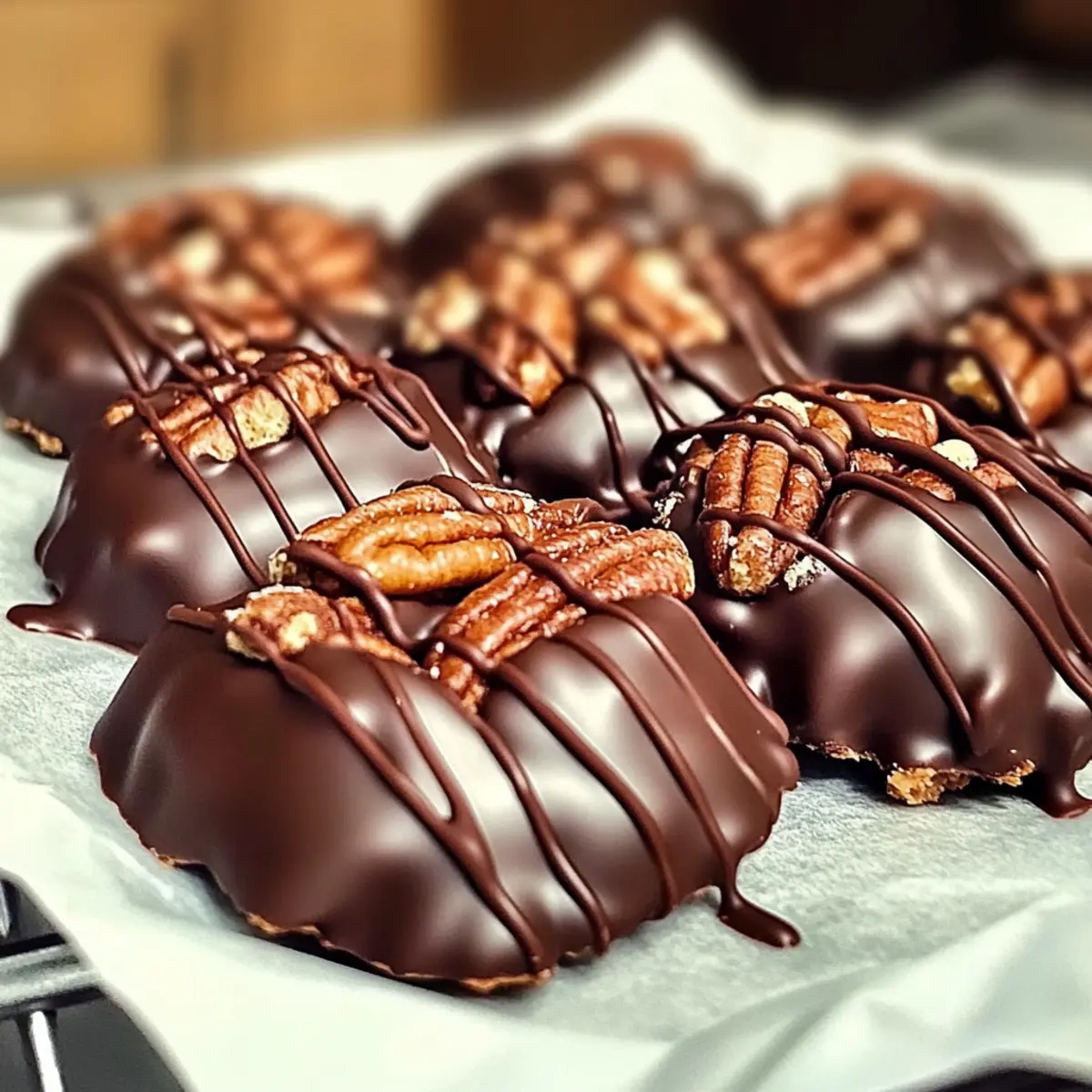 Preheat your oven to 350°F (175°C). Spread the pecans on a baking sheet and toast them for about 8–10 minutes, until they are golden and fragrant, stirring halfway through to ensure even toasting. This step enhances their flavor and crunch, making your Chocolate Pecan Turtle Clusters even more delightful.