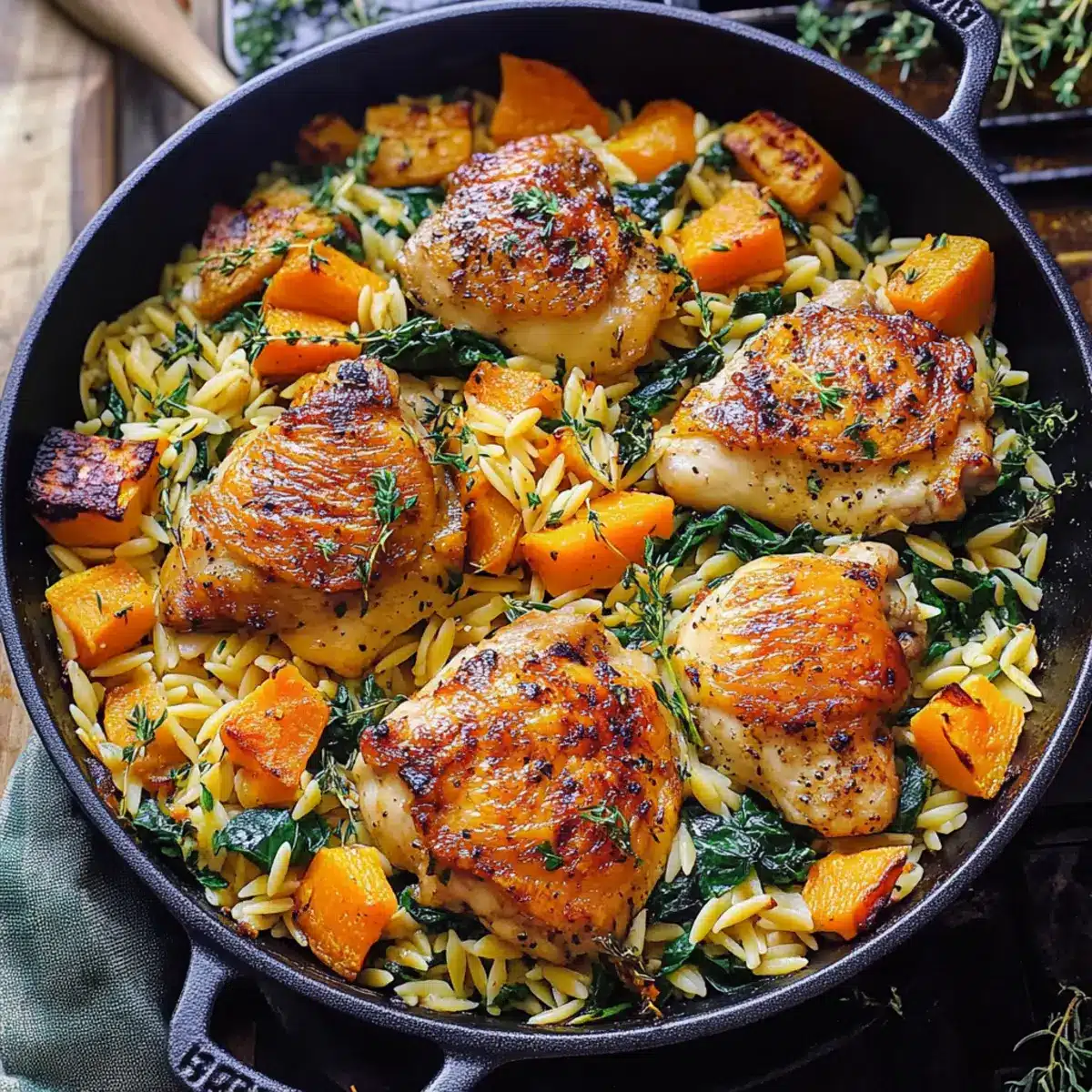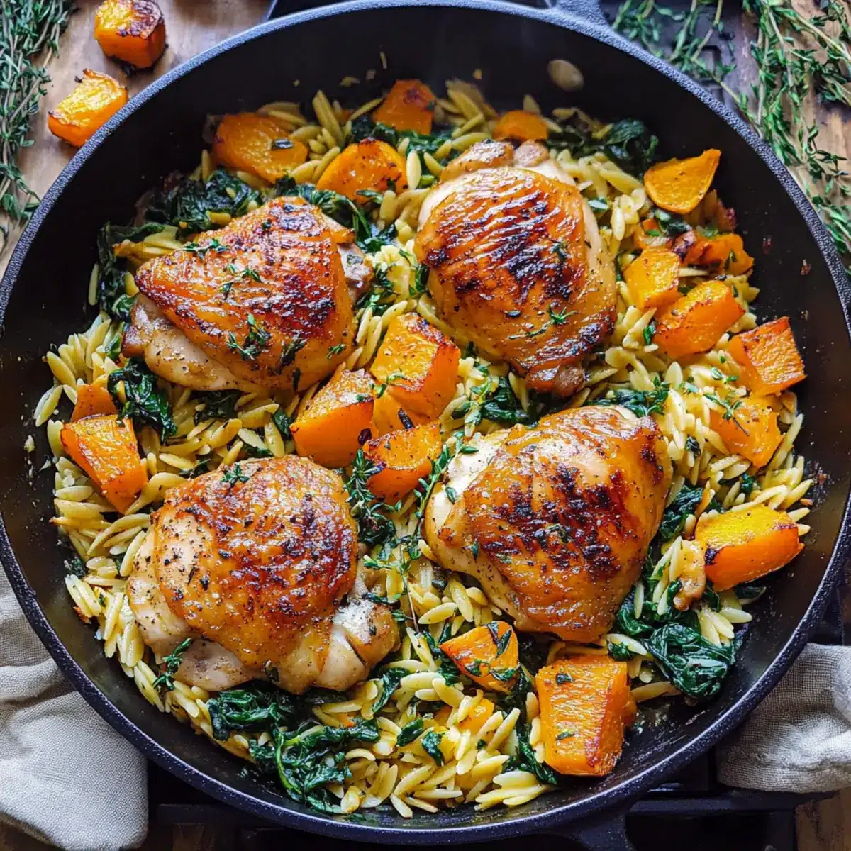 Creamy Chicken Orzo with Butternut Squash and Spinach Bliss