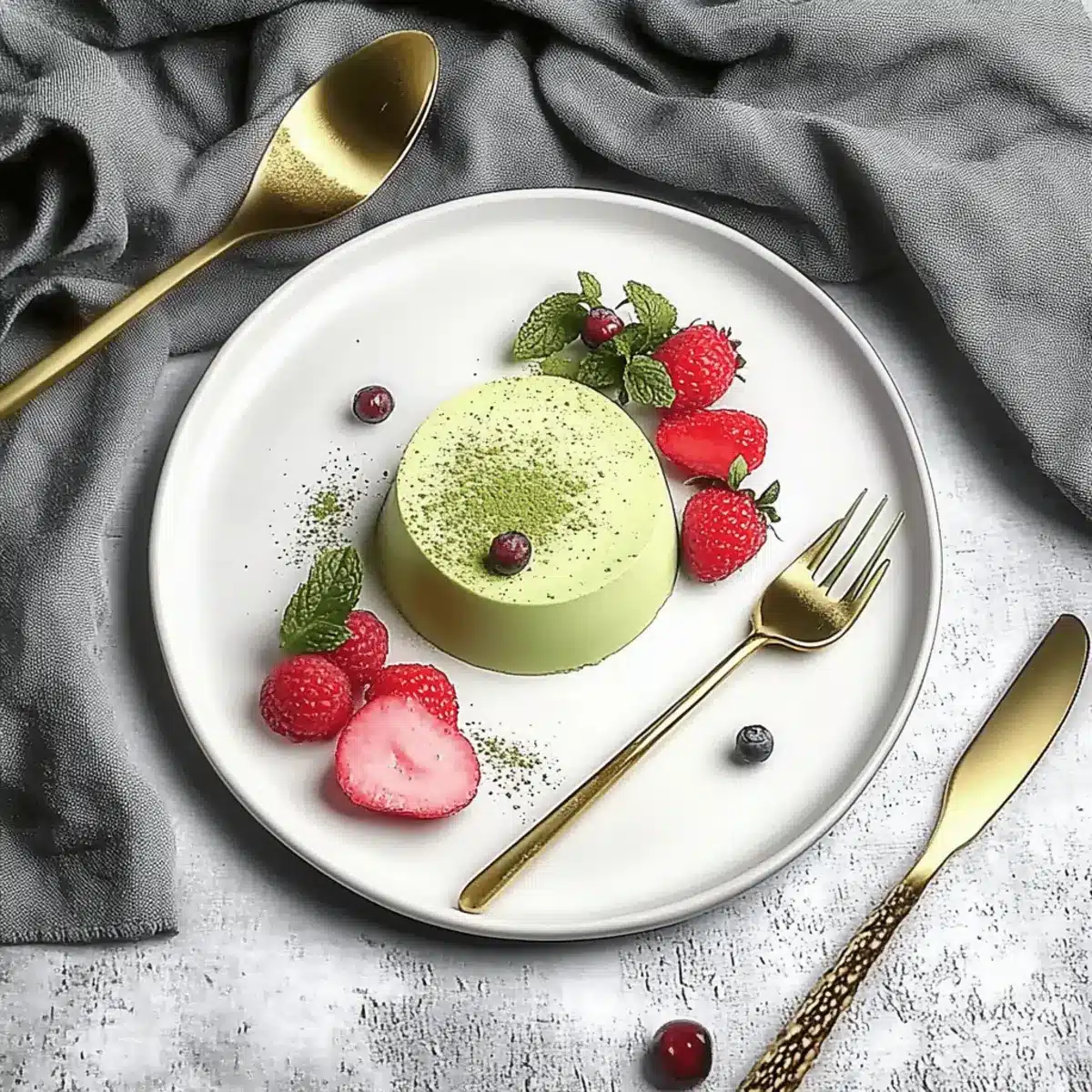To serve your glorious Creamy Matcha Panna Cotta, briefly dip the bottom of the ramekins in hot water for 10-15 seconds. This helps loosen the edges of the dessert. Invert them onto your serving plates, gently lifting to reveal the beautiful panna cotta. Garnish with fresh berries and mint leaves for an appealing presentation and added flavor just before enjoying.