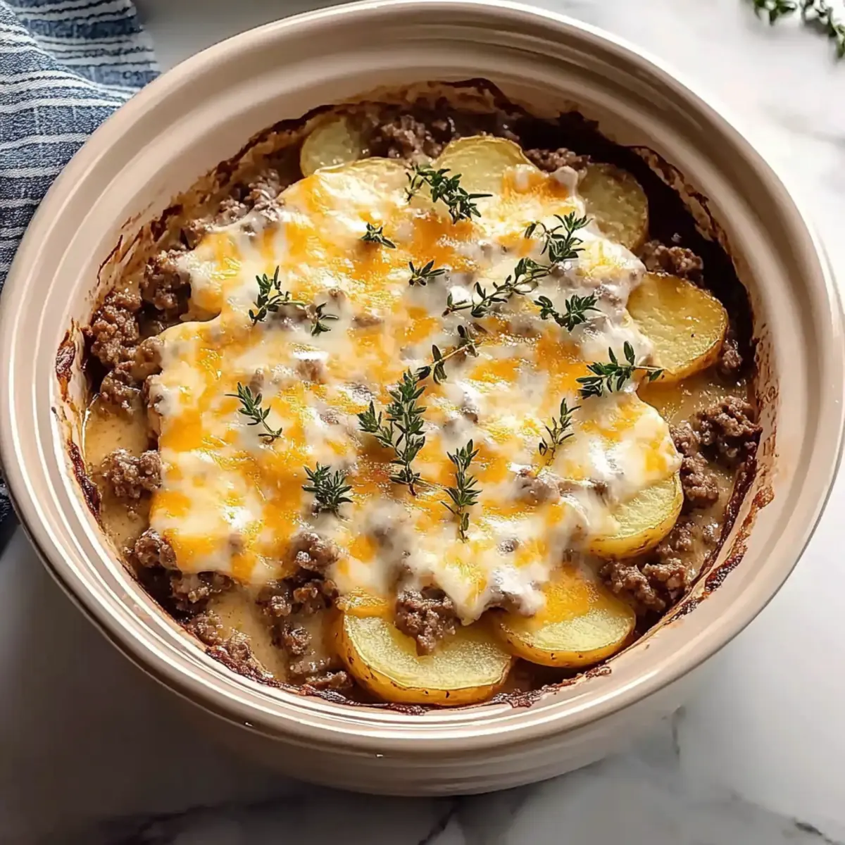 Creamy Broccoli Soup: Swap cream of mushroom soup for cream of broccoli soup to change up the flavor profile. This twist adds a delightful, rich taste that complements the potatoes superbly.