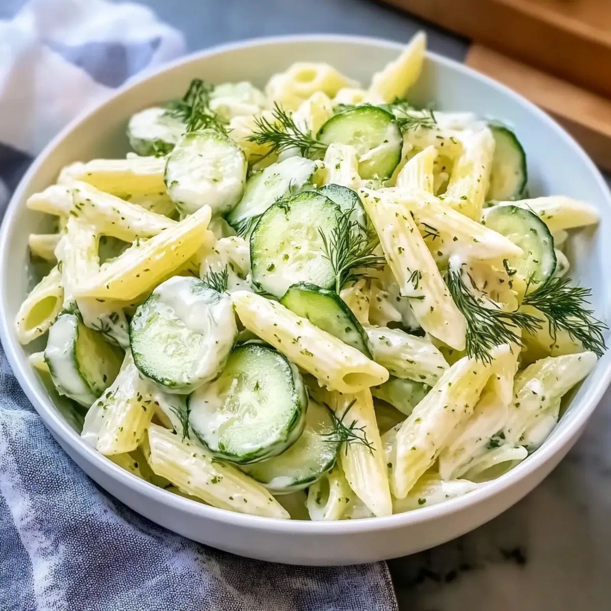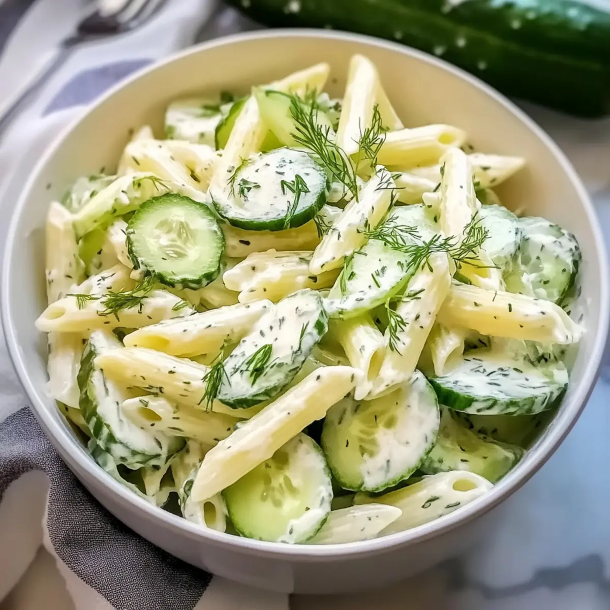 Refreshing Crunch: Expect a delightful crispness from the fresh cucumbers, perfectly balanced with the creamy pasta salad base—ideal for hot summer days!