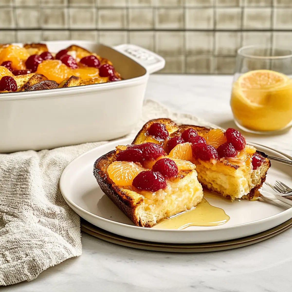 Fresh Berries: Juicy strawberries, blueberries, or raspberries add a refreshing, tart contrast bursting with flavor and color. The natural sweetness and acidity balance well with the richness of the casserole.