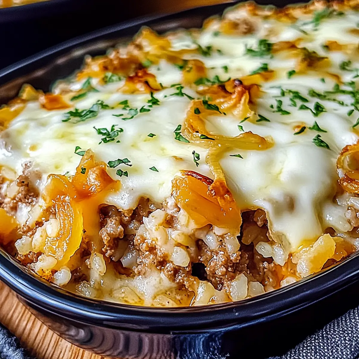 Cozy French Onion Ground Beef and Rice Casserole Delight