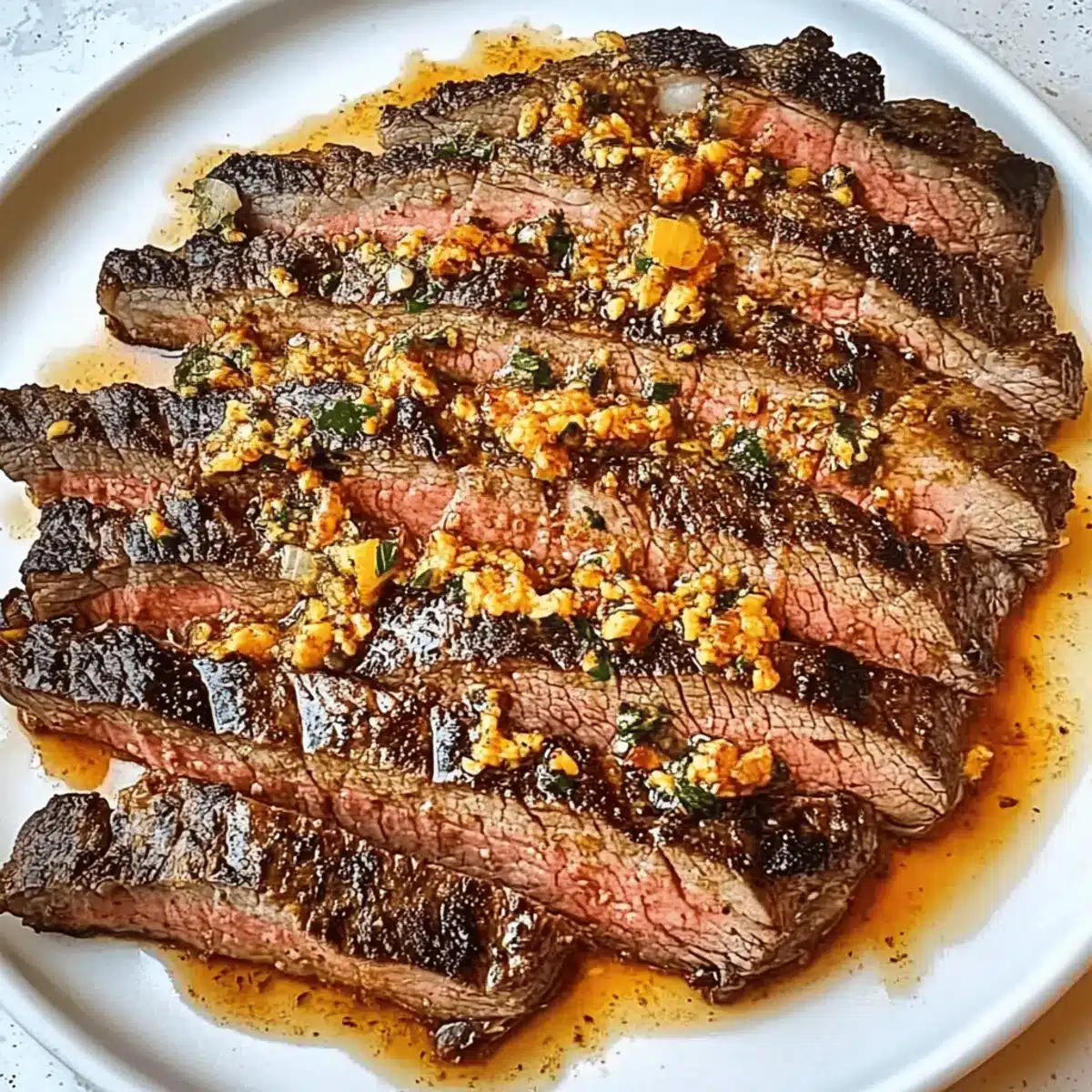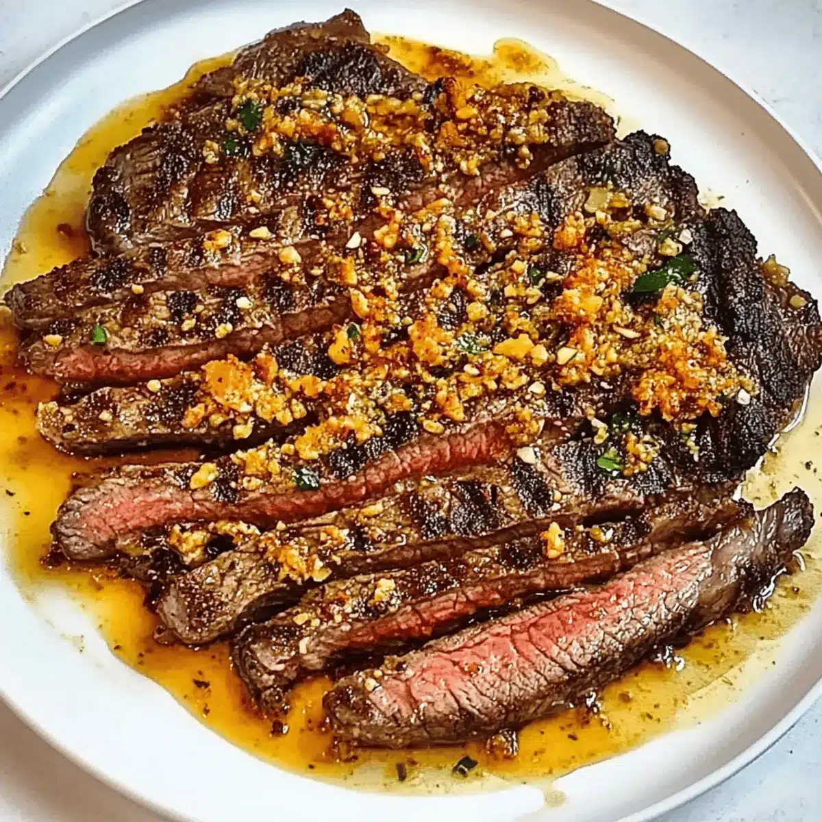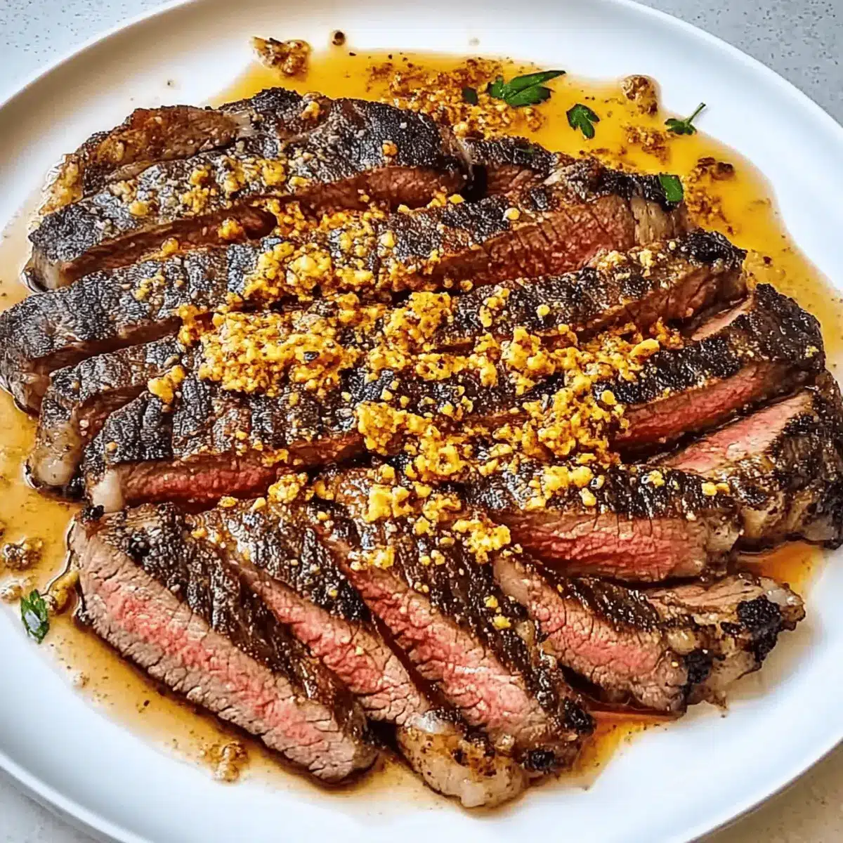 After resting, slice the steak against the grain into thin strips for optimal tenderness. Drizzle the golden garlic butter generously over the sliced steak, allowing it to soak into every bite. Garnish with fresh parsley, giving your dish a pop of color and freshness. Serve hot, paired with fluffy rice or creamy mashed potatoes for an unforgettable meal.