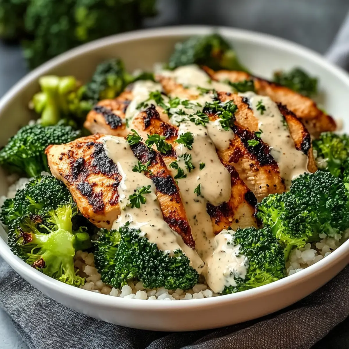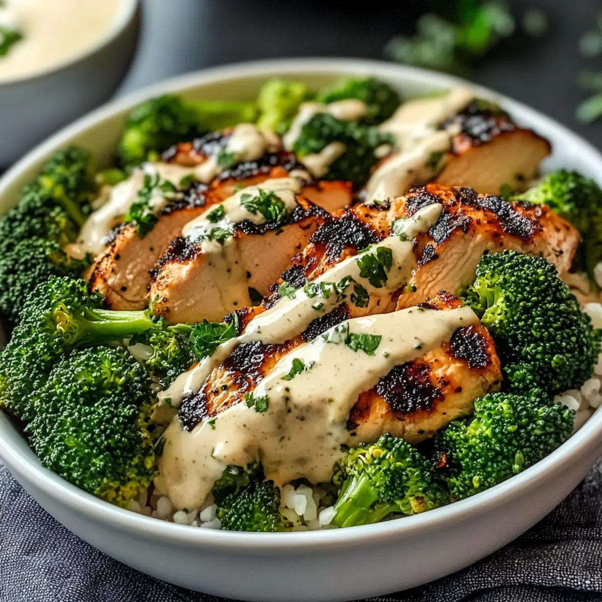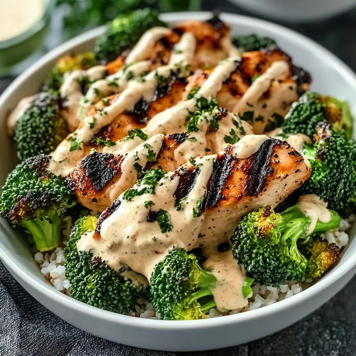 Delightful Grilled Chicken & Broccoli Bowls with Creamy Garlic Sauce
