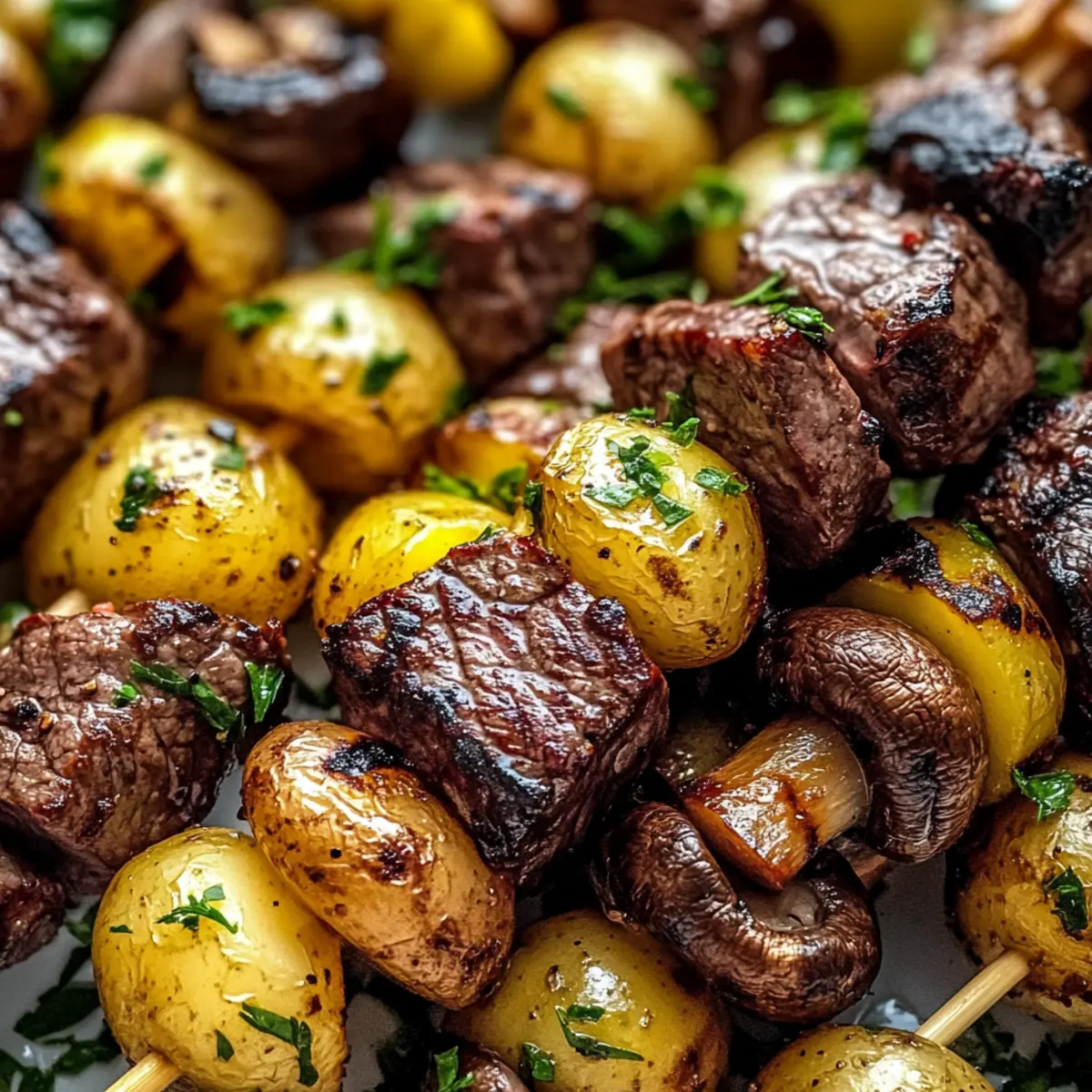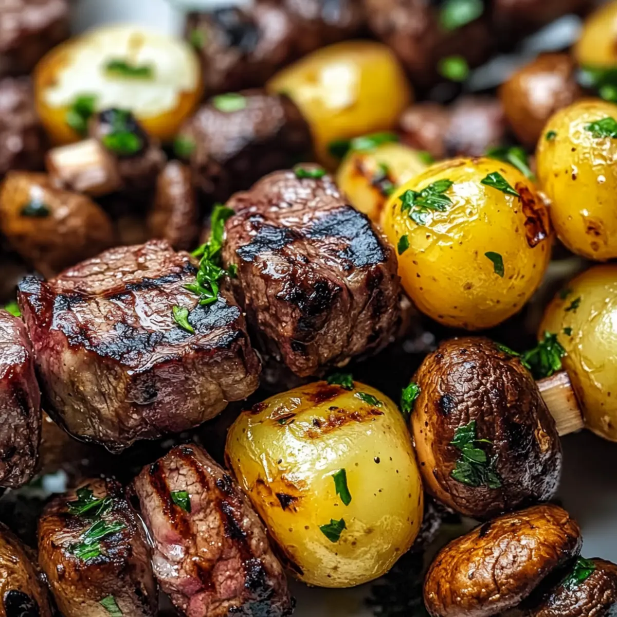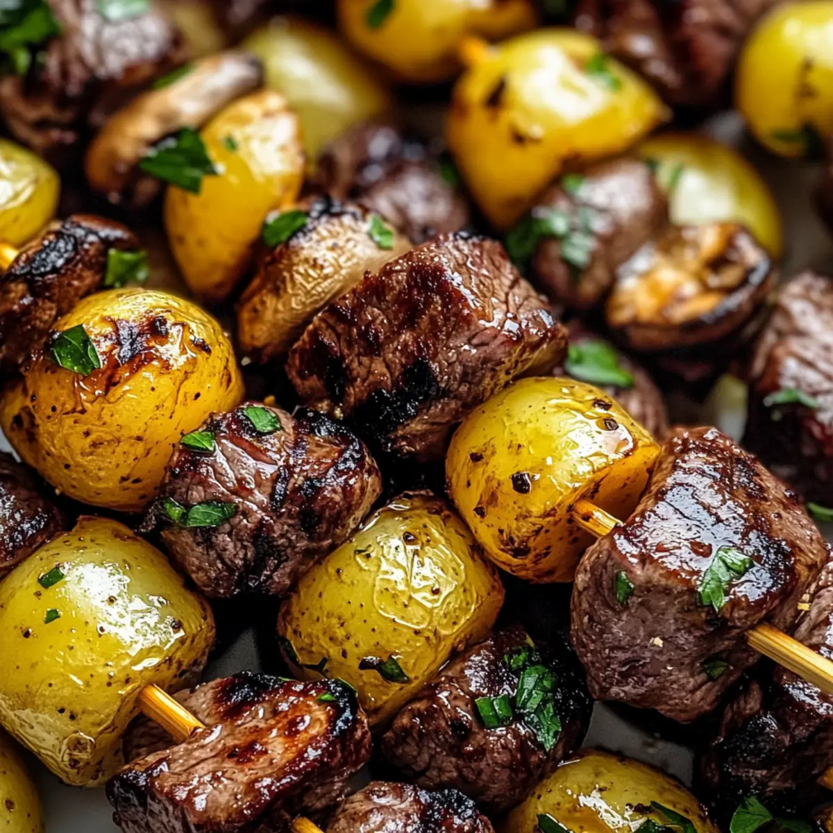 Savor Grilled Steak, Potato, and Mushroom Kabobs Tonight!