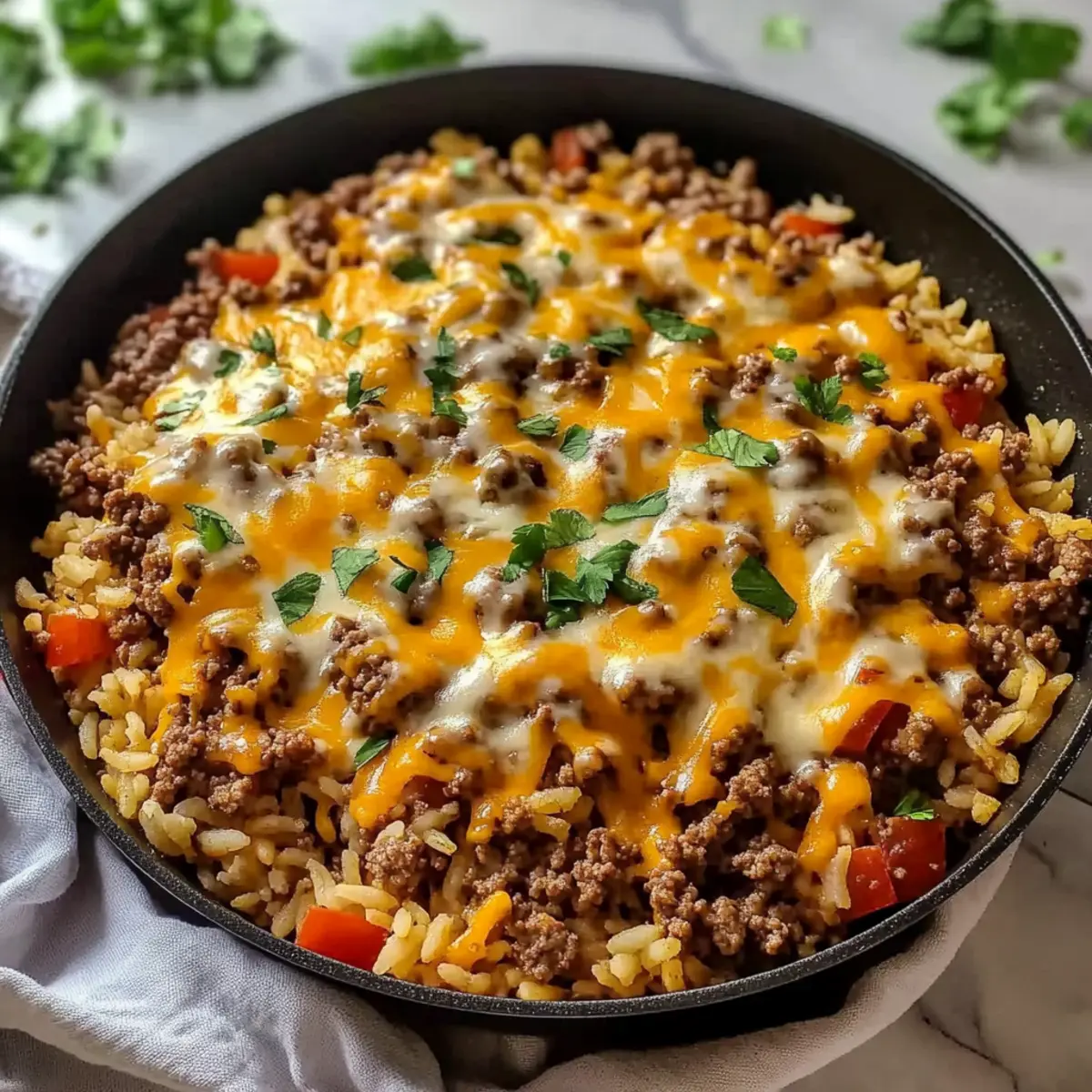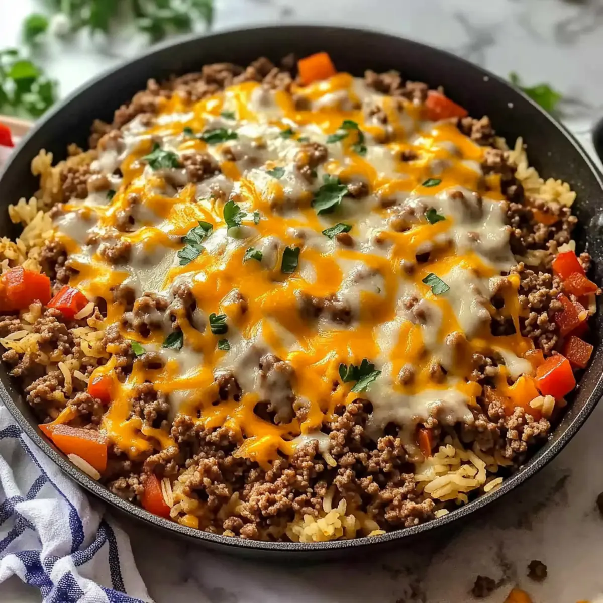 Flavor Packed: The combination of seasoned ground beef, vibrant veggies, and melted cheese creates a dish that’s bursting with flavor and comfort, reminiscent of family favorites.