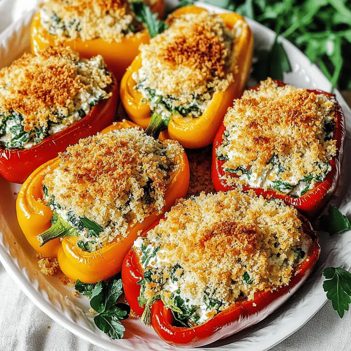 As I pulled the fresh bell peppers from the market, their vibrant colors reminded me of sun-kissed Tuscan fields, beckoning me to whip up something delightful. Enter my Herby Ricotta Stuffed Peppers—a delightful vegetarian dish teeming with creamy ricotta, aromatic herbs, and just the right amount of sharp parmesan. Not only do these beauties pack a flavor punch, but they also come together in less than an hour with minimal fuss, making them perfect for any weeknight dinner or an elegant gathering. Plus, with easy substitutions for gluten-free and dairy-free diets, everyone can indulge! Ready to transform your dinner table into a taste of Italy? Let’s dive into this mouthwatering recipe!