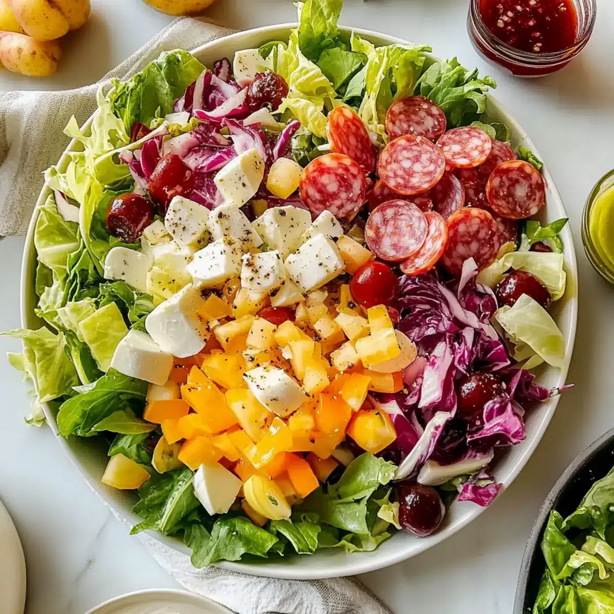 Bursting with flavor, this Italian Chopped Salad stands out for its vibrant mix of fresh ingredients that awaken your taste buds. Quick and easy, it’s the perfect solution for busy nights when you want a homemade meal without the fuss. Versatile, you can swap ingredients based on what you have on hand—try adding grilled chicken for extra protein, or switch the cheese for feta to jazz it up. Nutrient-packed, this salad is rich in vegetables and light on calories, making it an ideal choice for summer dining. Serve it alongside crusty bread or a Roasted Pear Salad for a delightful meal that everyone will enjoy!