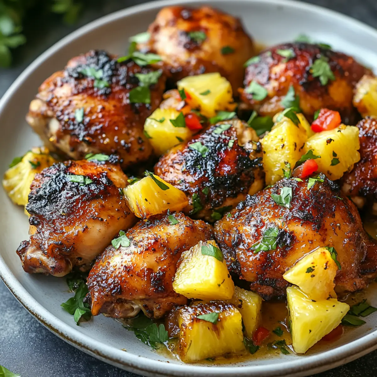 Jerk-Spiced Chicken Thighs with Pickled Pineapple Bliss