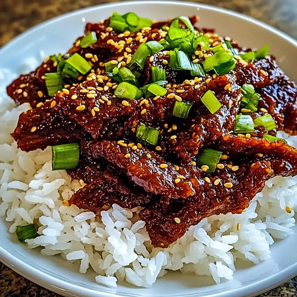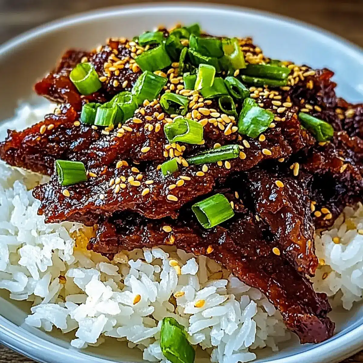 - Serve the cooked beef over rice and garnish with scallions and sesame seeds. Add optional sides like kimchi or lettuce wraps.