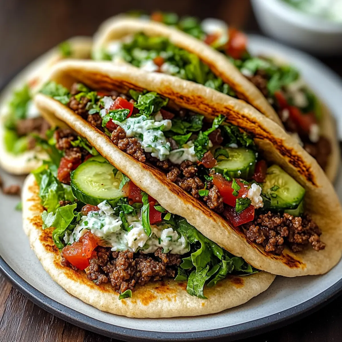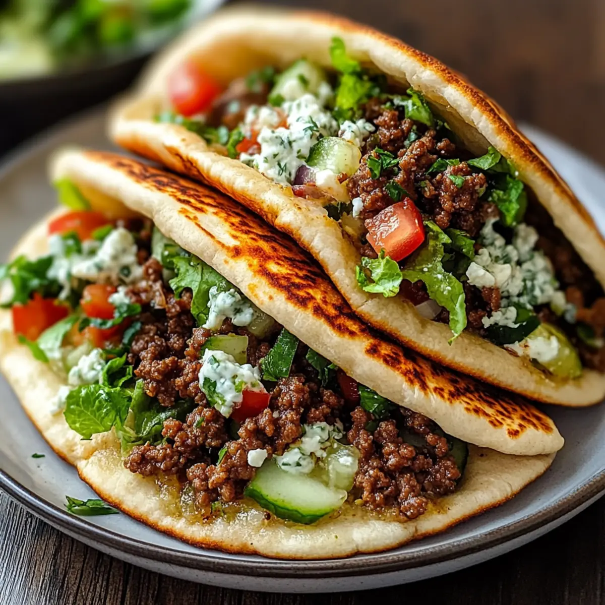 Next, layer in your choice of fresh vegetables, such as shredded lettuce, diced tomatoes, and sliced cucumbers. Add a sprinkle of crumbled feta cheese on top for a touch of tanginess. These ingredients add a refreshing crunch that perfectly complements the savory beef, making your Mediterranean Ground Beef Pita Pockets even more enjoyable.