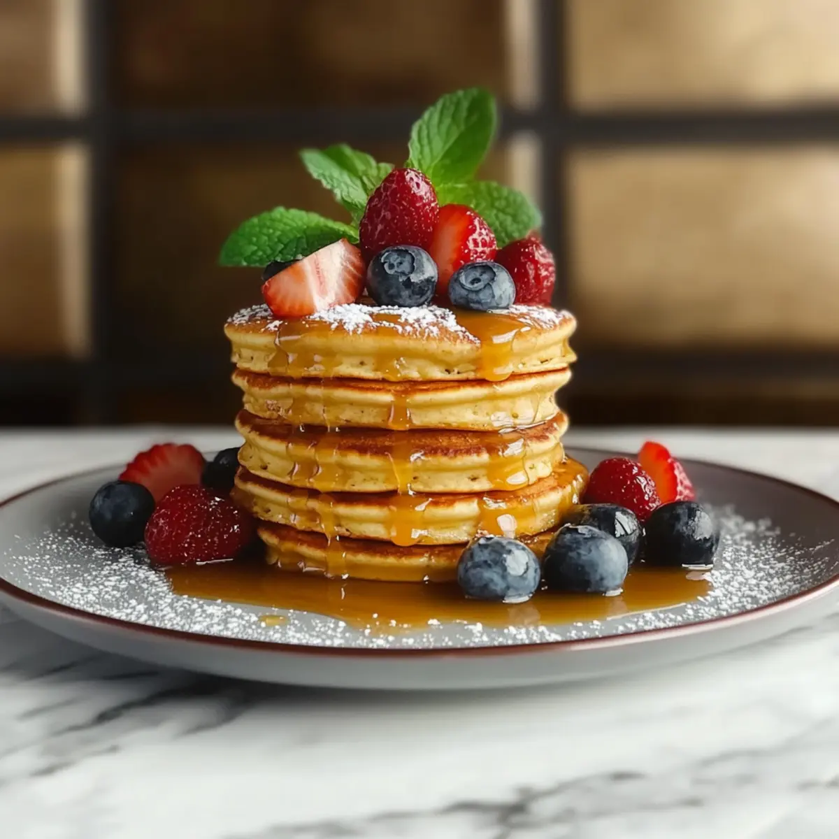 Fresh Fruit Medley: A colorful assortment of berries or bananas adds a burst of freshness and a touch of acidity to balance the richness of the pancakes.