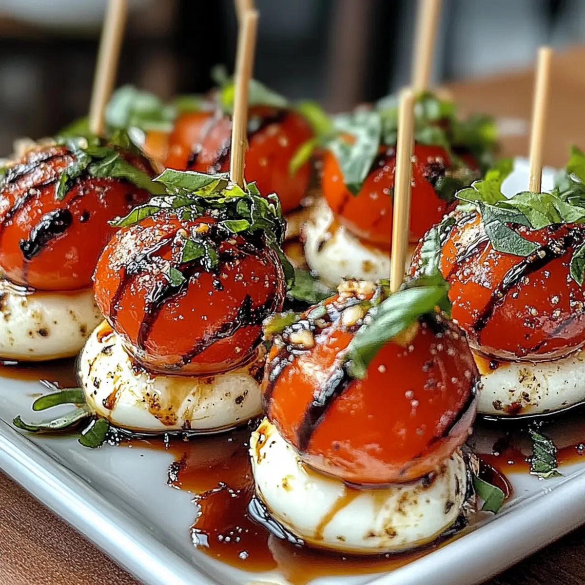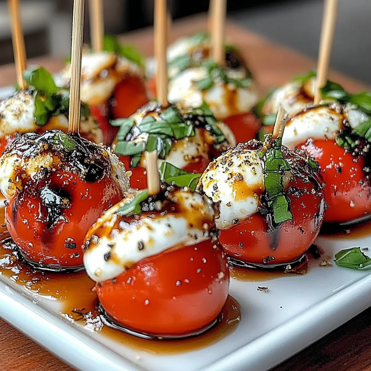 - Assemble Bites: On skewers, thread cherry tomato, basil leaf, and mozzarella. Repeat until ingredients are used.