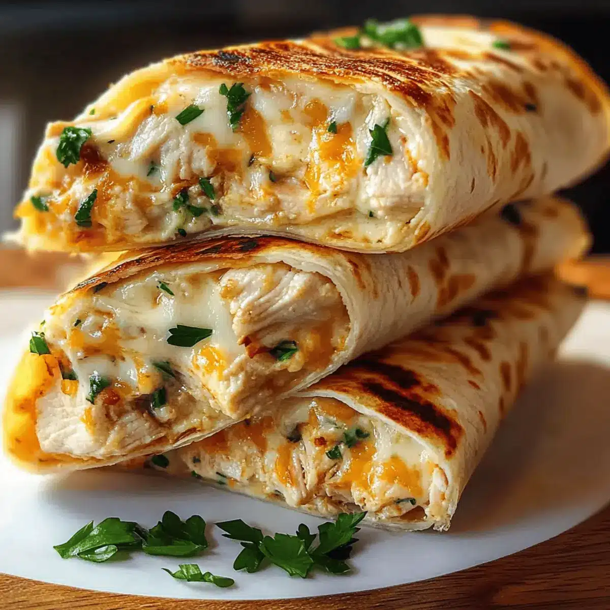 Customizable Fillings: Don’t hesitate to experiment with different cheese varieties or add veggies like spinach or bell peppers for a tasty twist in your cheesy garlic chicken wraps.