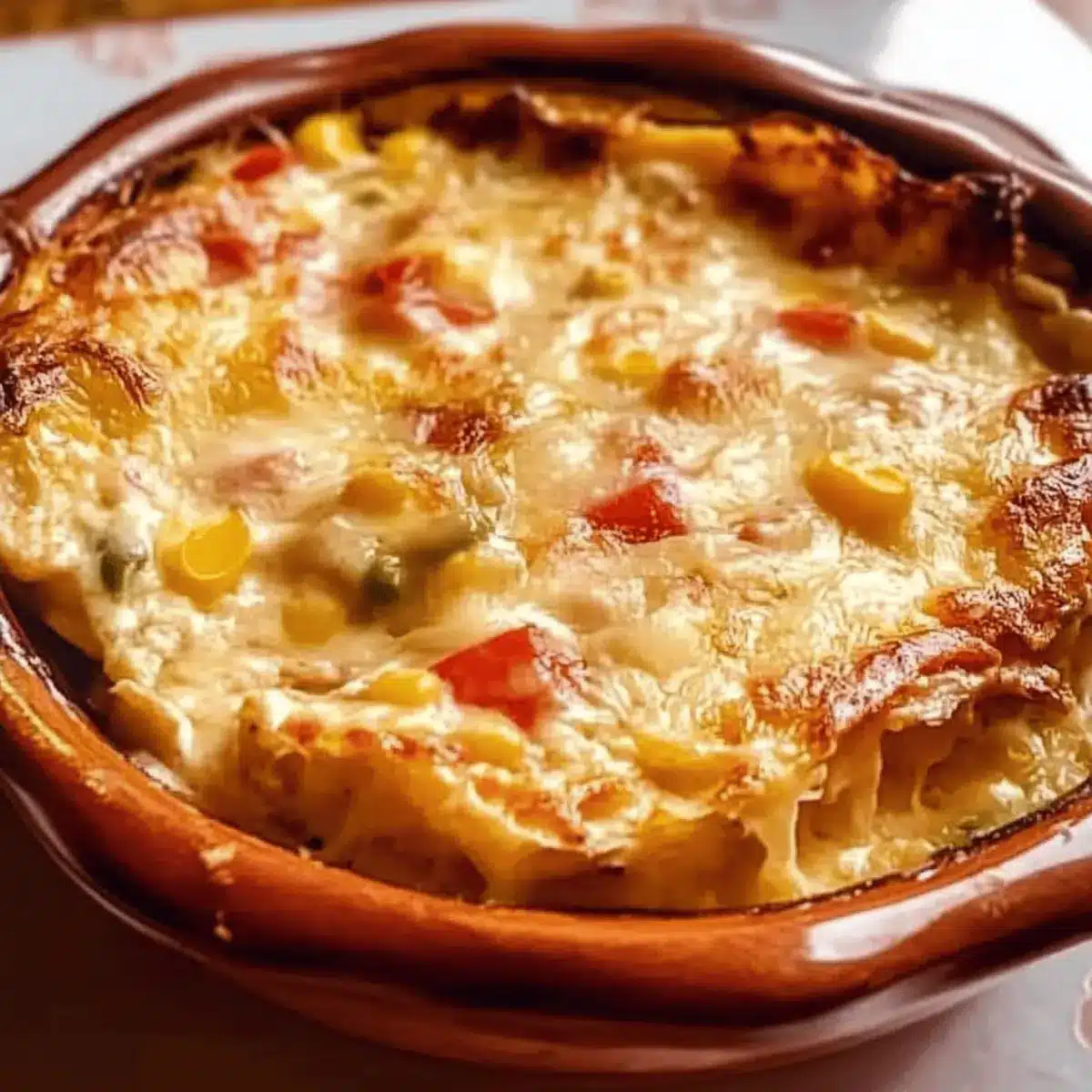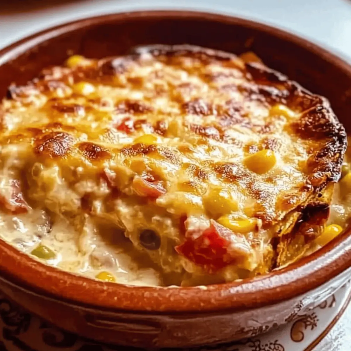 Comforting Layers: Each bite of Pastel Azteca brings together savory chicken and crispy tortillas that create a satisfying experience perfect for family dinners.