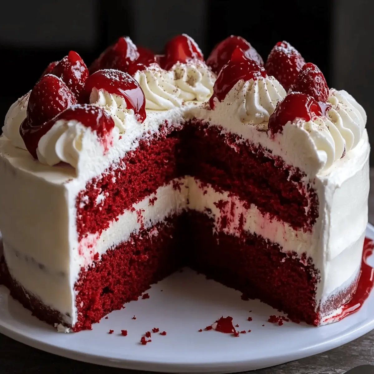 Decadent Delight: This Red Velvet Cheesecake Cake combines two favorites, giving you the creamy richness of cheesecake with the soft allure of red velvet!
