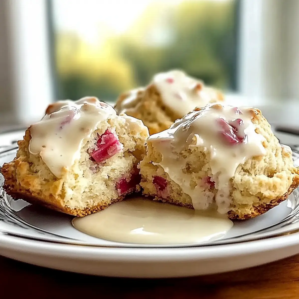 Flaky Rhubarb Scones with Zesty Lemon Drizzle Delight