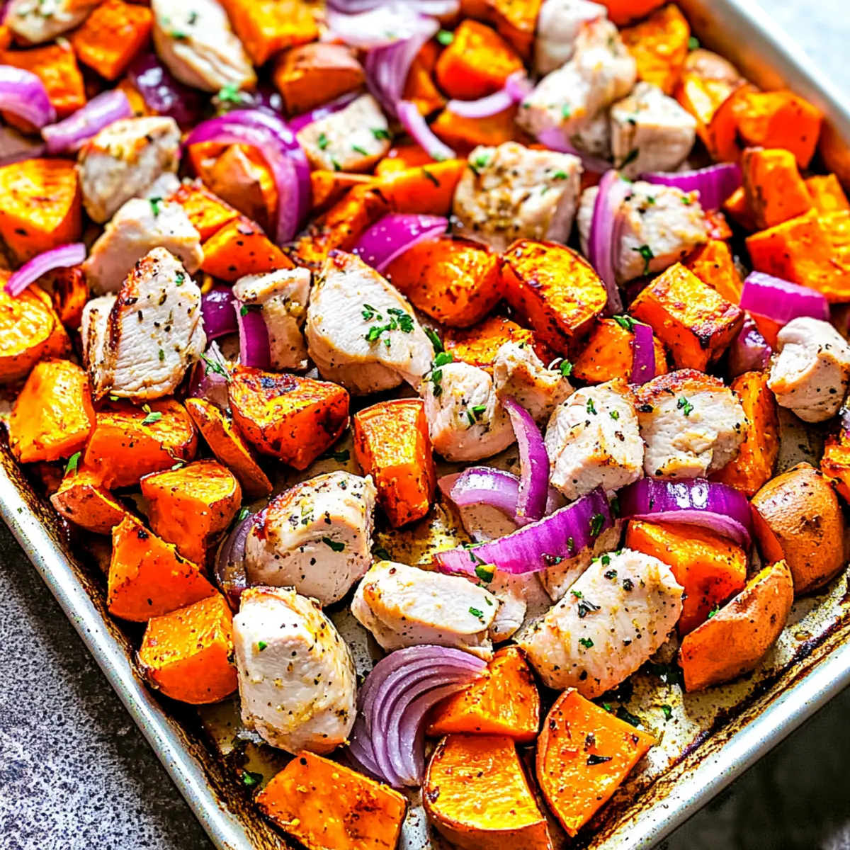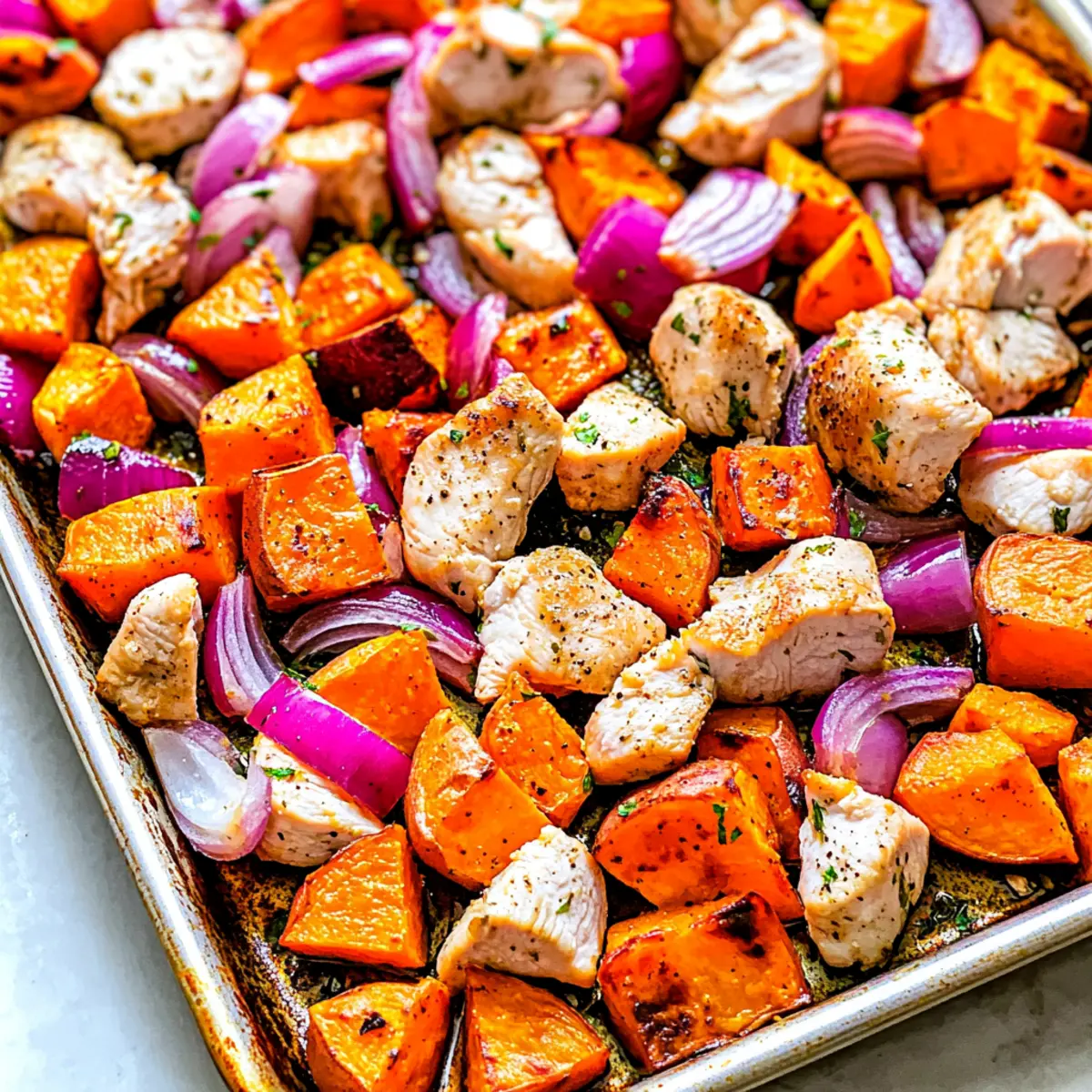 Uniform Cuts: Ensure all vegetables are cut to similar sizes to promote even cooking and consistent tenderness throughout your Sheet Pan Roasted Sweet Potatoes and Chicken.