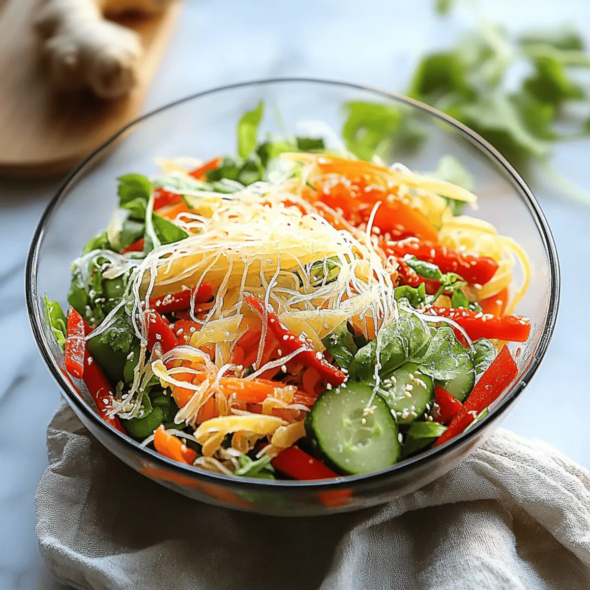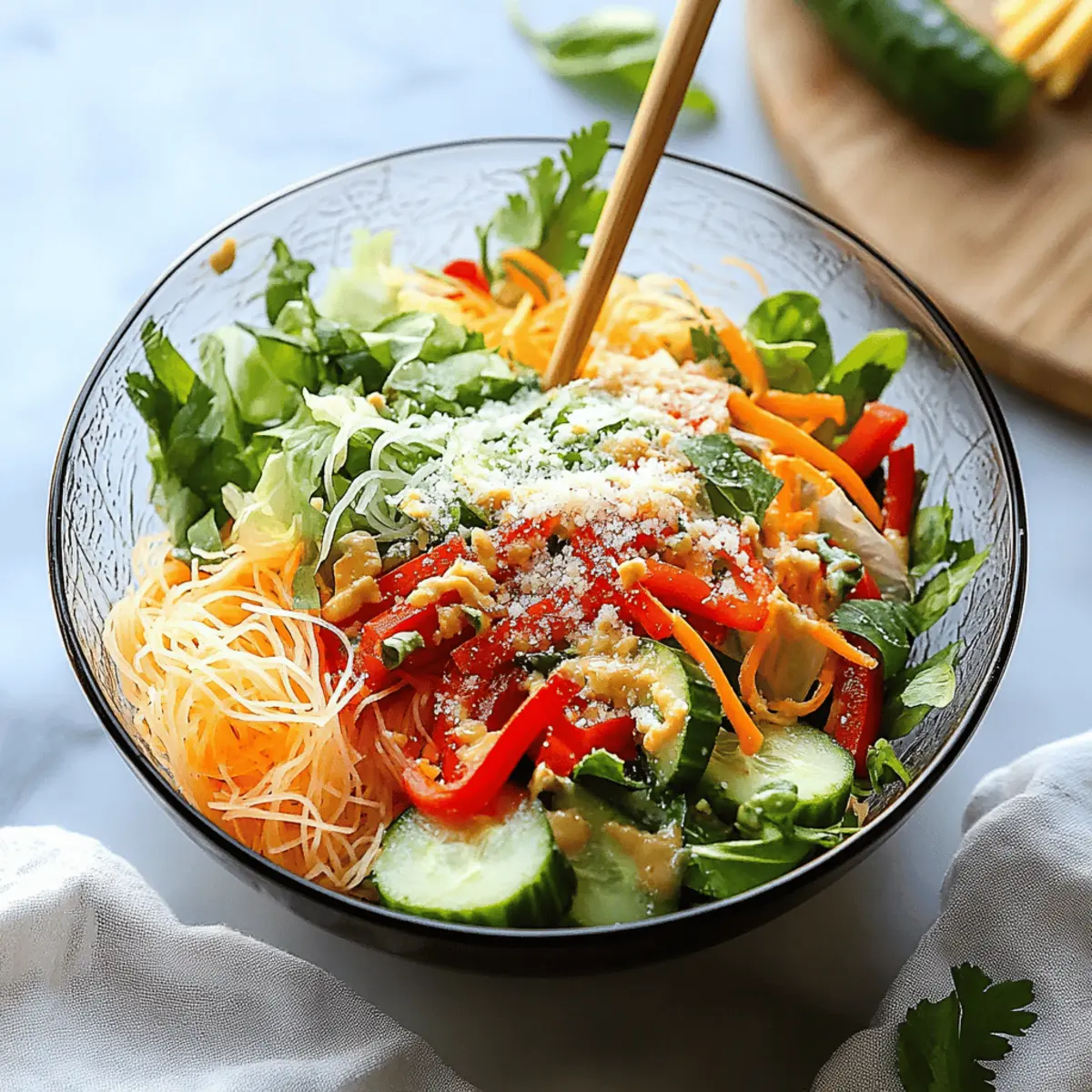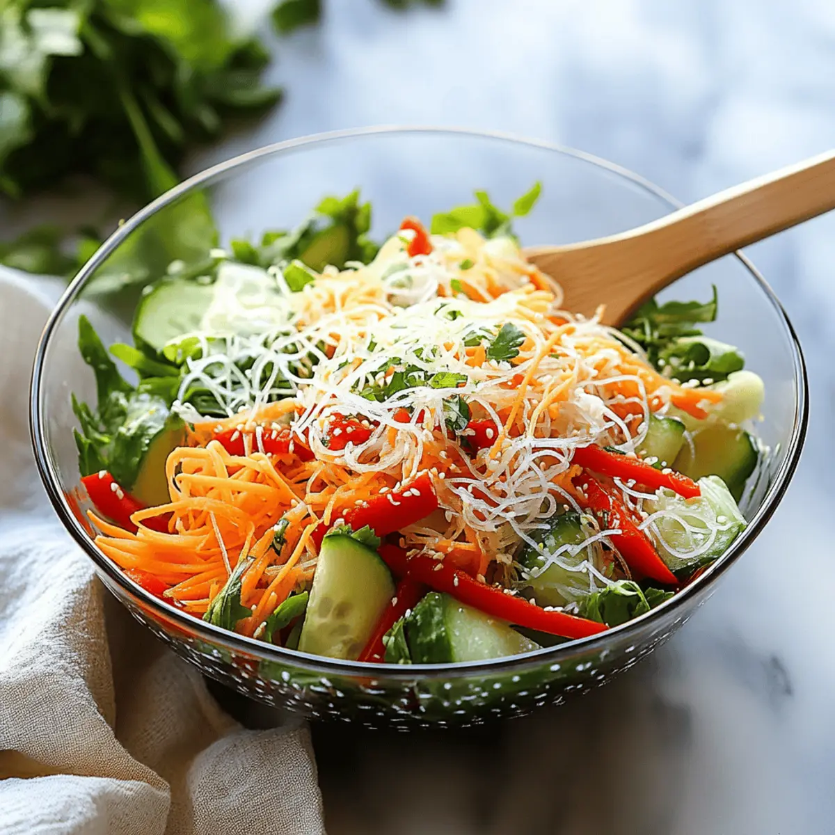If your rice noodles are clumping together, it may be due to not rinsing them under cold water after cooking. Make sure to rinse thoroughly to stop the cooking and separate them. If you find your salad is lacking flavor, consider tweaking the dressing ingredients; sometimes, an extra splash of soy sauce or a hint of honey can elevate the taste wonderfully!