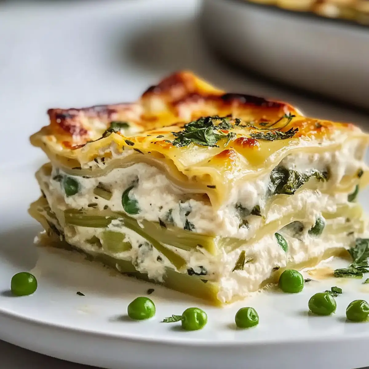 Comforting, Creamy Layers: This Springtime White Lasagna features rich ricotta and gooey mozzarella, making it an indulgent treat.