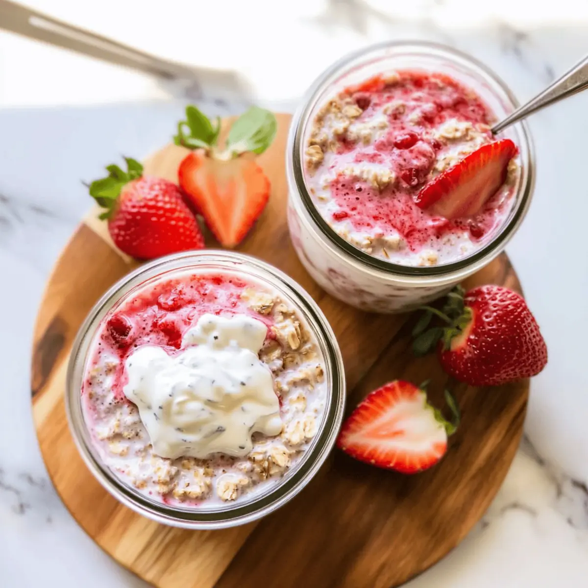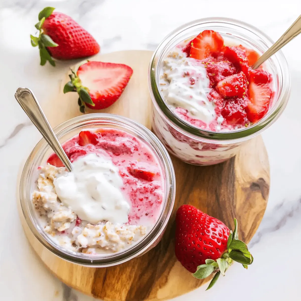 Storage Solution: Use airtight containers for your Strawberries & Cream Overnight Oats, ensuring they last up to 4 days in the fridge while maintaining freshness.