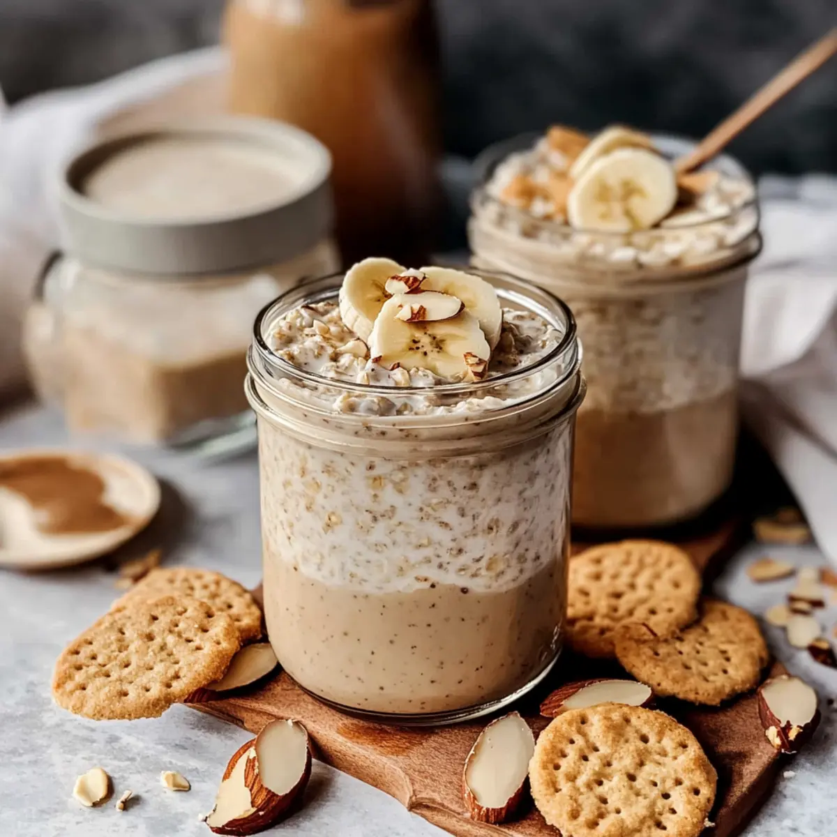In the morning, remove the jars from the fridge and give the oats a good stir. Now, it’s time to personalize your treats! Top each jar with sliced bananas, slivered almonds, a drizzle of almond butter, or fresh blueberries according to your taste. These delicious toppings bring added flavor and nutrition to your Sugar Cookie Overnight Oats.