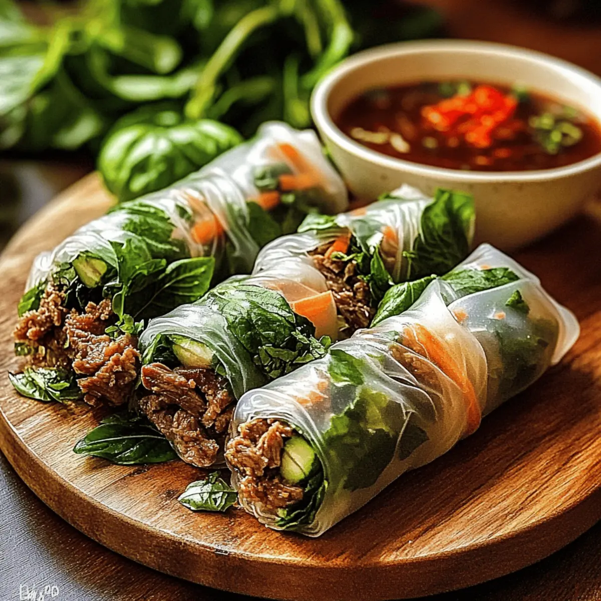 These Thai Basil Beef Rolls are perfect for meal prep enthusiasts! You can prepare the beef filling and refrigerate it up to 3 days in advance, keeping it in an airtight container to maintain its flavor and moisture. When ready to enjoy, simply reheat the filling in a skillet until warm, then set up your rolling station as described. The rice paper wraps should be soaked in warm water just before rolling to ensure they remain fresh and pliable. By pre-cooking the filling, you save precious time during busy weeknights while still enjoying the same delicious taste of freshly made Thai Basil Beef Rolls!