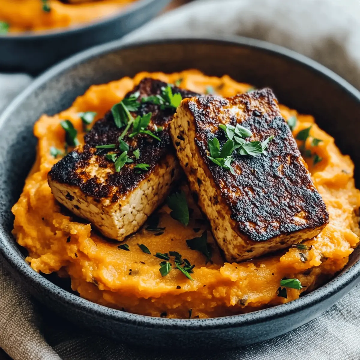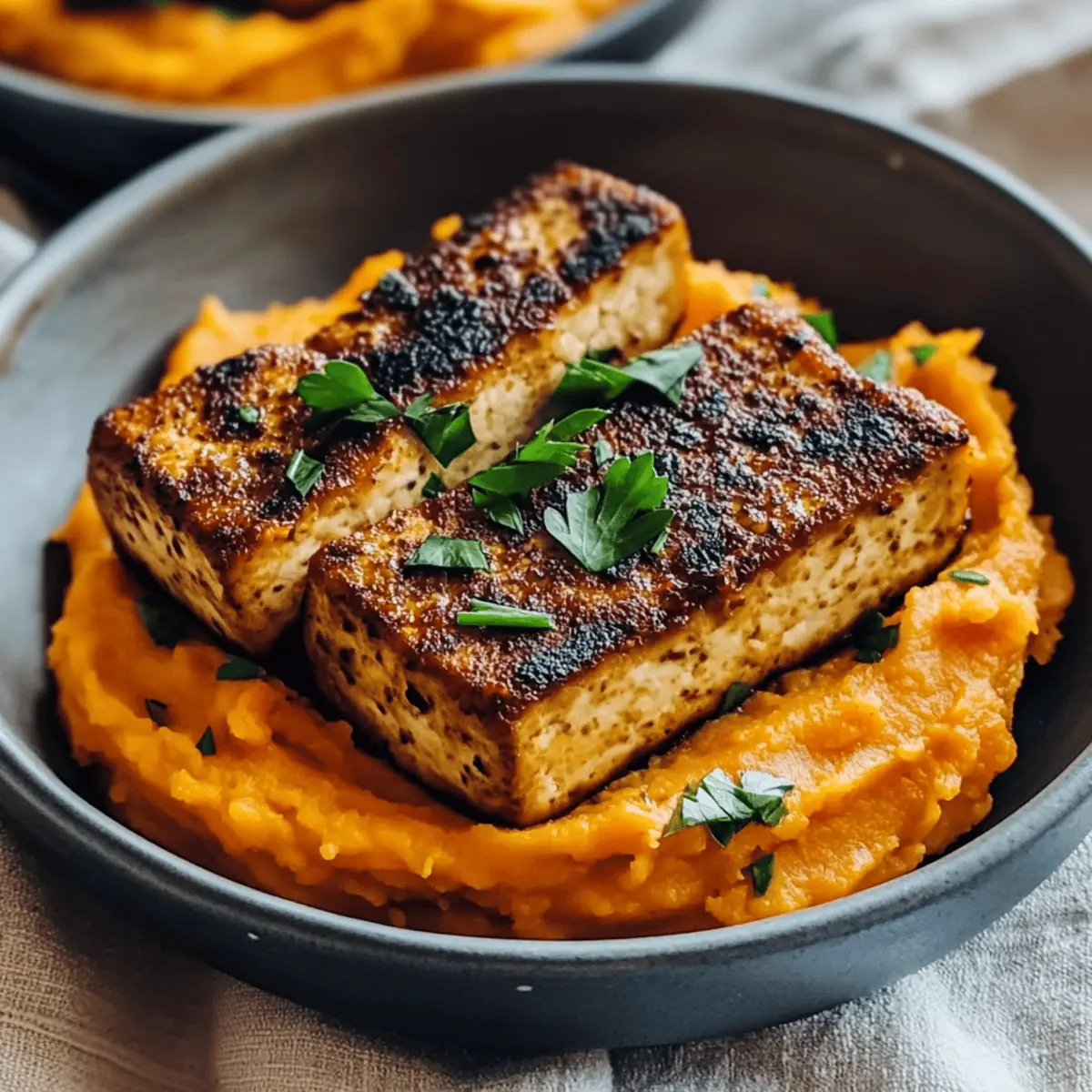 Tofu Steak with Mashed Sweet Potato: A Cozy Vegan Delight