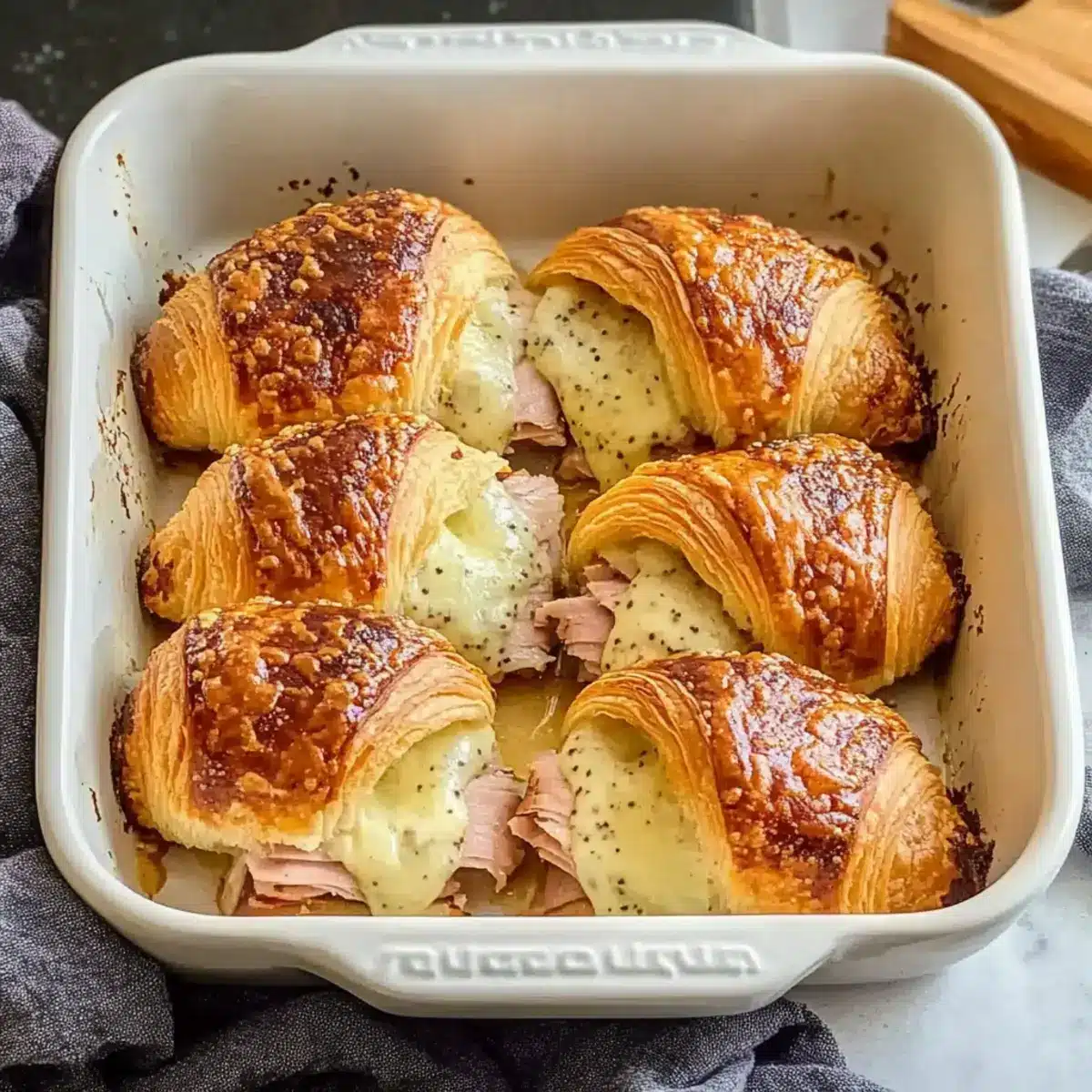 Place the baking dish in the preheated oven and bake the croissants for 15–18 minutes, or until they turn a deep golden brown and the cheese is beautifully melted. Keep an eye on them, as cooking times may vary based on your oven, ensuring they achieve that perfect flaky finish.