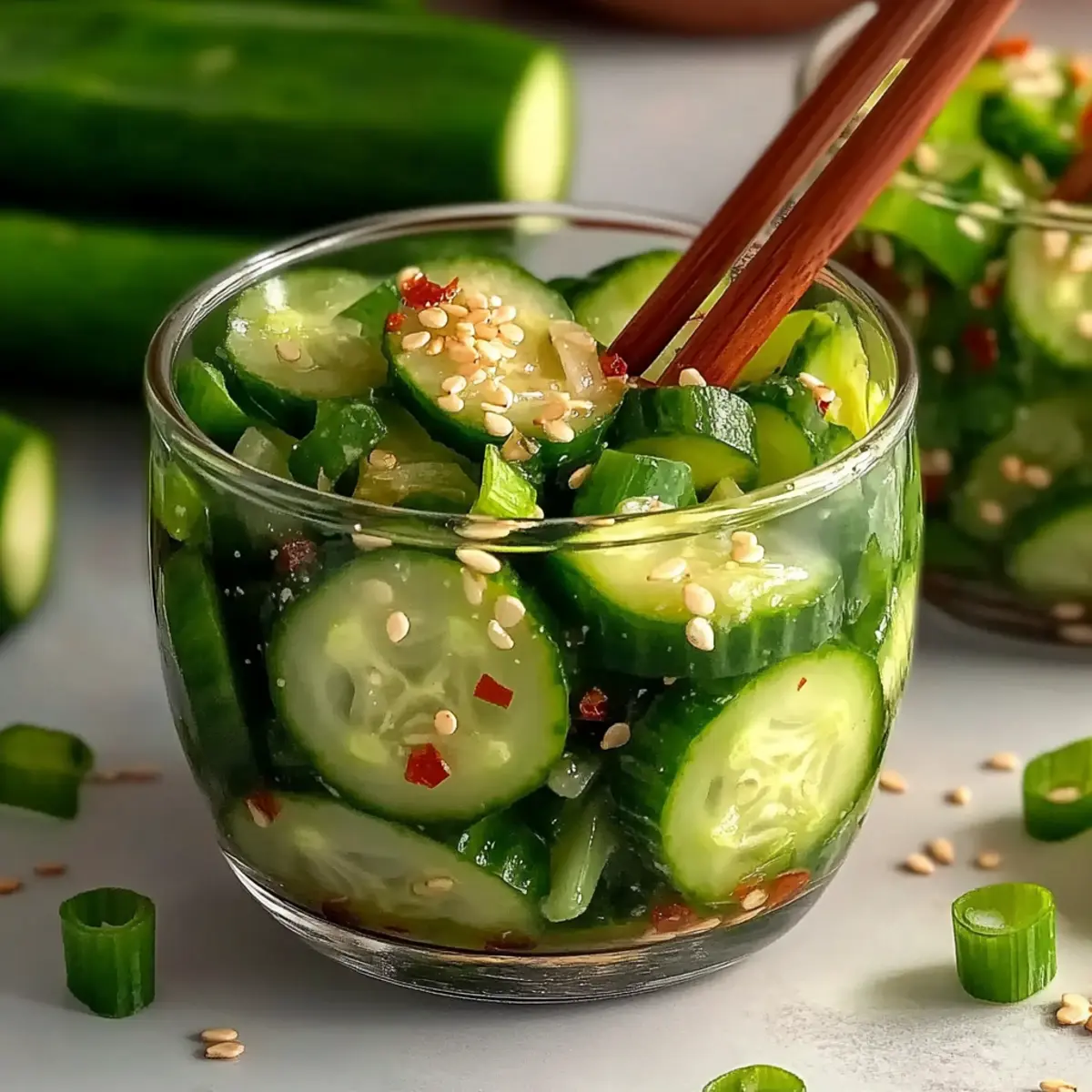 These Viral Cucumber Salad preparations are perfect for busy home cooks looking to save time! You can slice the cucumbers and combine the dressing up to 24 hours in advance, storing them separately in airtight containers. To maintain quality, refrigerate the cucumber slices to prevent them from becoming watery, and mix in the dressing just before serving for that fresh burst of flavor. The garlic and sesame oil can enhance their taste even more when combined shortly before serving. When ready to enjoy, simply toss together and garnish with red chili flakes if desired—this way, you’ll have a delightful meal ready in no time, effortlessly impressing friends and family!
