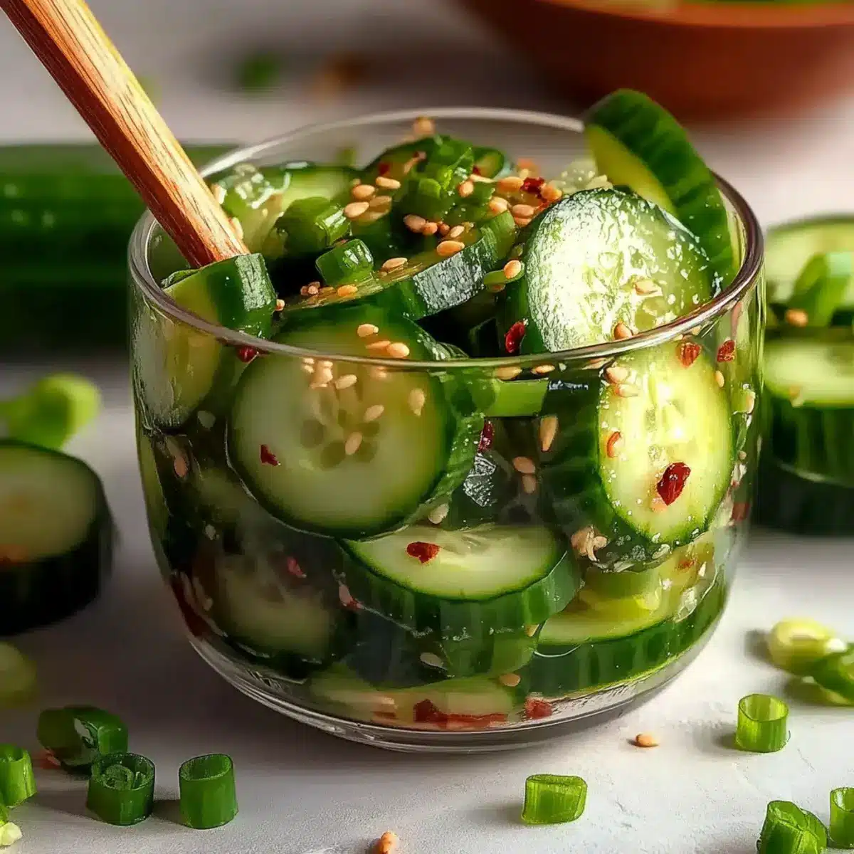 Before serving, optionally sprinkle red chili flakes over the top to add a kick of spice if that’s your style. Serve the Viral Cucumber Salad immediately to enjoy its optimal crunch and freshness. It makes for a delightful side dish at summer barbecues or a light, refreshing meal on its own, sure to charm everyone at your table!